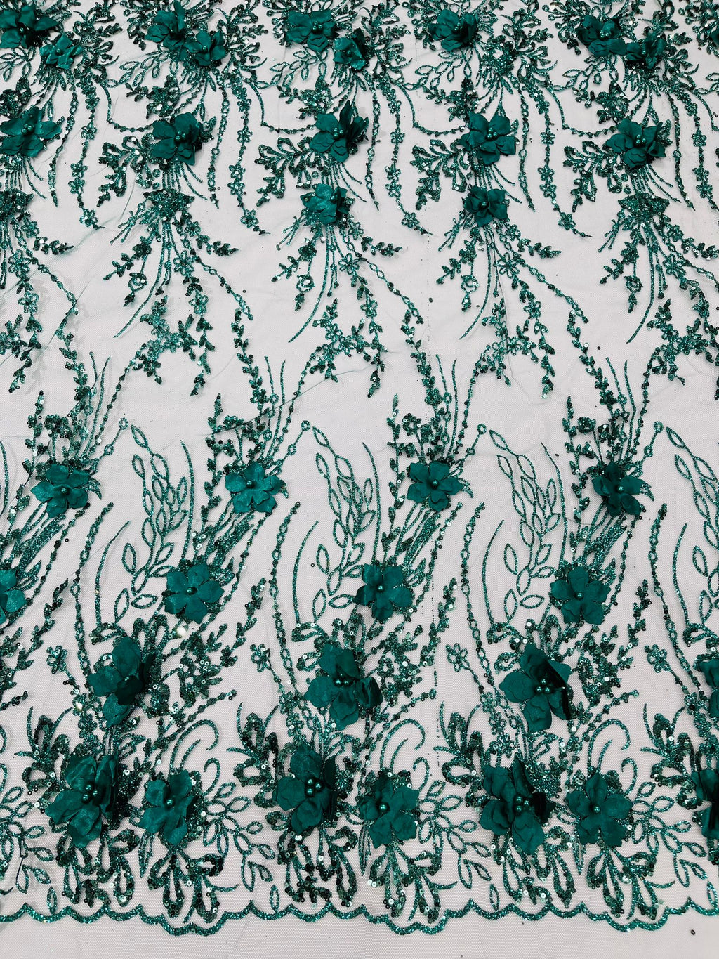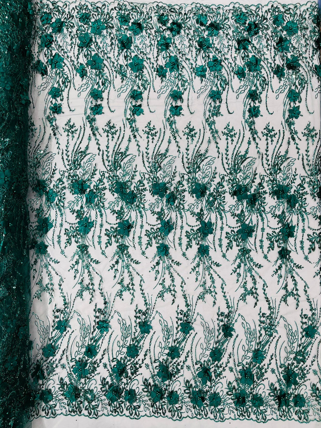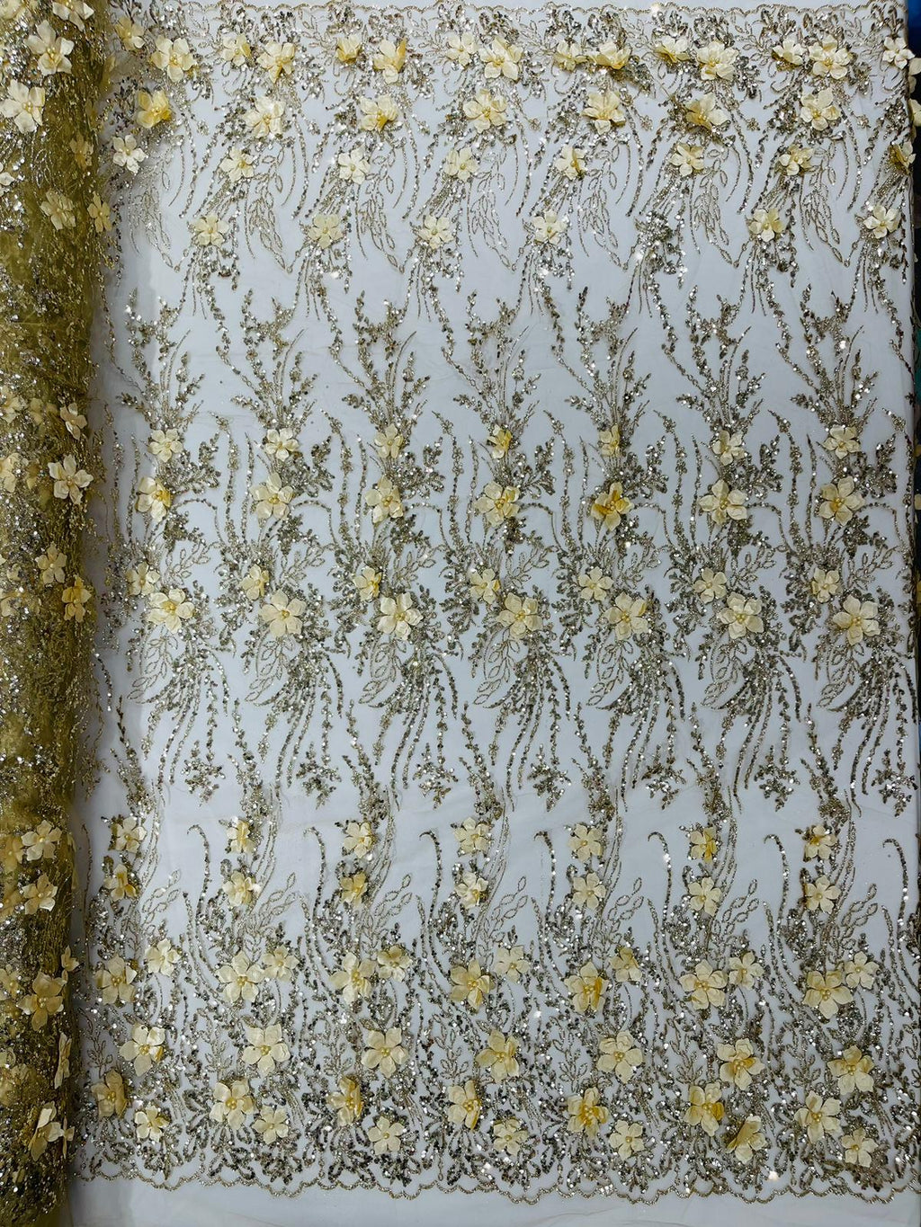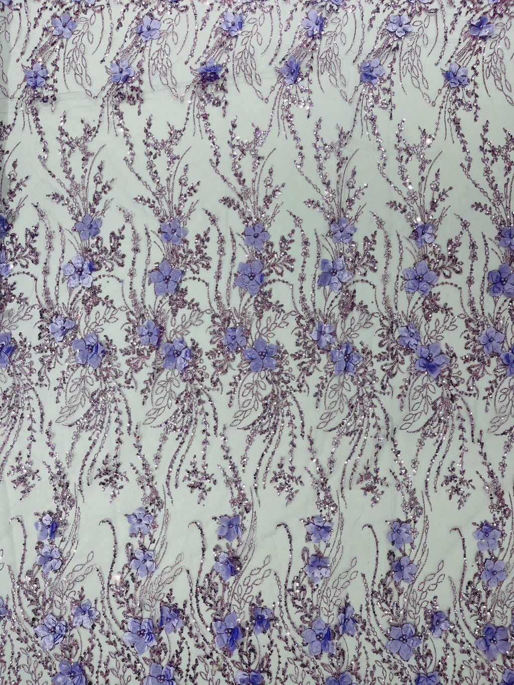 Beautiful 3d satin flower design embroider with glitter/sequin. The lace has glitter/sequins and 3d satin flowers embroider for a sparkling real look. This 3d satin flower lace has a glitter/sequins on the design that gives a beautiful shine. This lace is a great item for show people and dance dresses, great for Vegas shows.