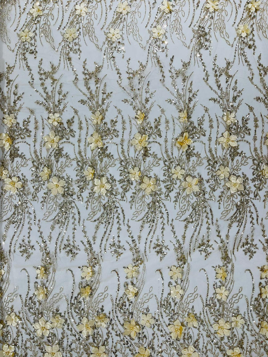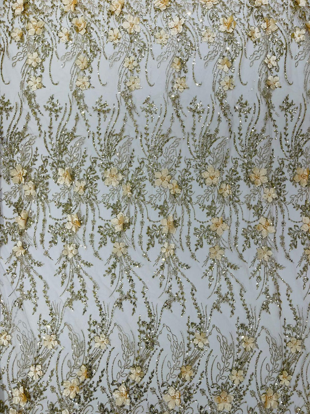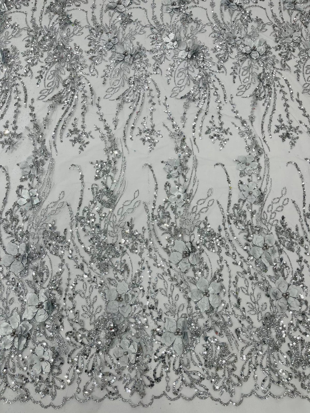 3d Luxury satin floral glitter 54" Wide| New Creations Fabric & Foam Inc.