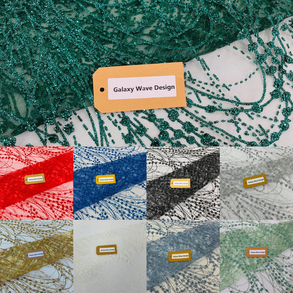 This shiny glitter Galaxy design is made up of glue on a Mesh with glitter on the design. This lace is modern but yet classy and the glitter gives it's a beautiful look. The lace can be use for dresses, tablecloths, runners, decoration, skirts, jackets, nightgowns, prom dresses, apparel and much more.