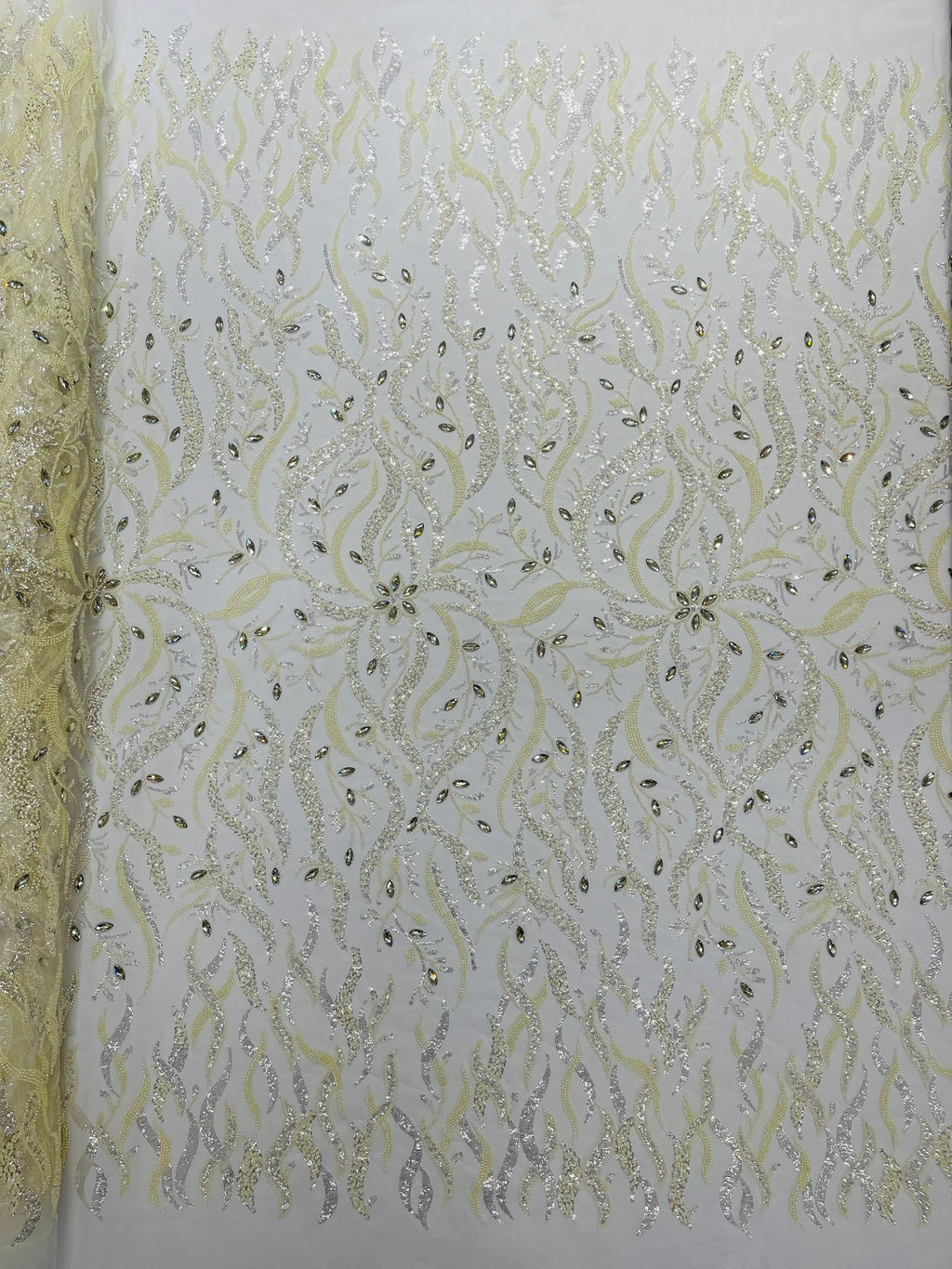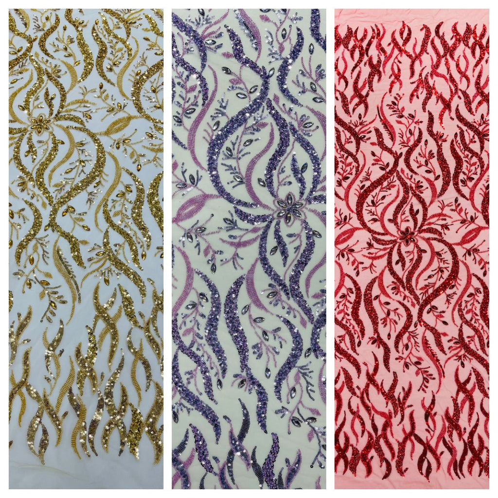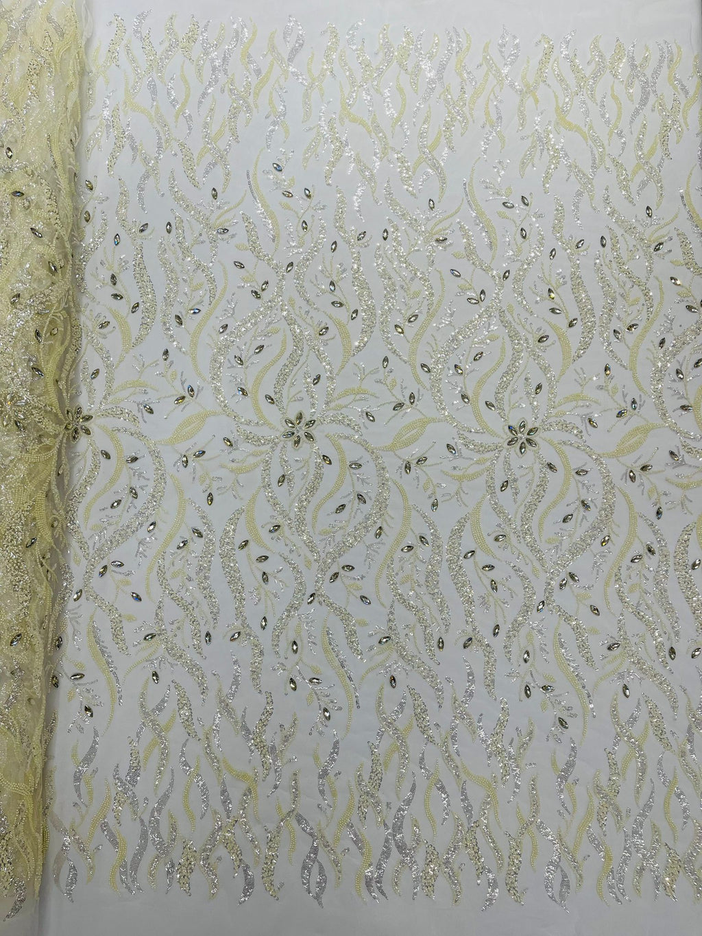 Jewel Vine Beaded Lace 54" Wide| New Creations Fabric & Foam Inc.