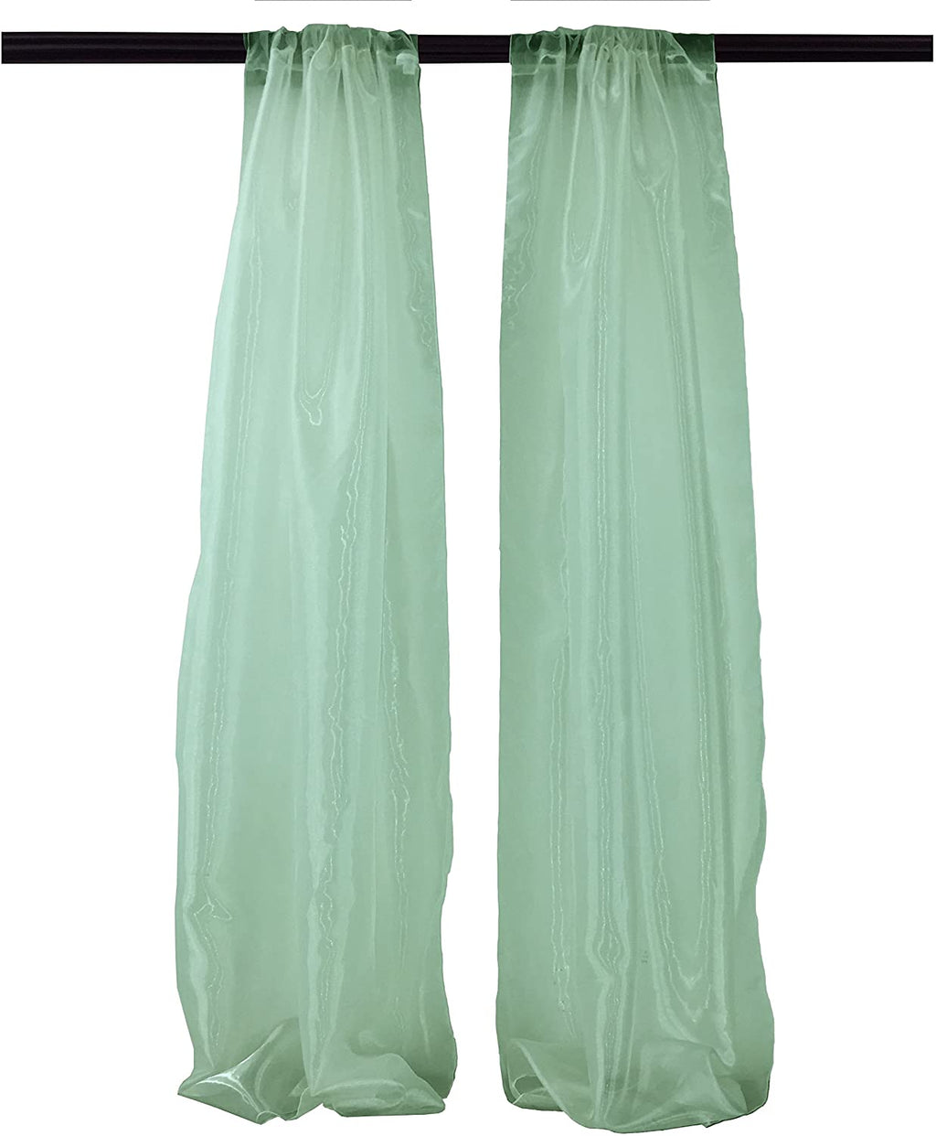 These backdrop panels are light weight and see through. The bottom and sides are serged for a clean look. The top has a 4 inch rod pocket . The panels are often used with pipe and drape system, found in all hotels, banquets centers and other event locations. The panels can be used as a backdrop or dividers. The color of the panels are indicated in the title and all the sewing lines are with matching color thread. These backdrops need to be ironed on a very low setting as it is very delicate.