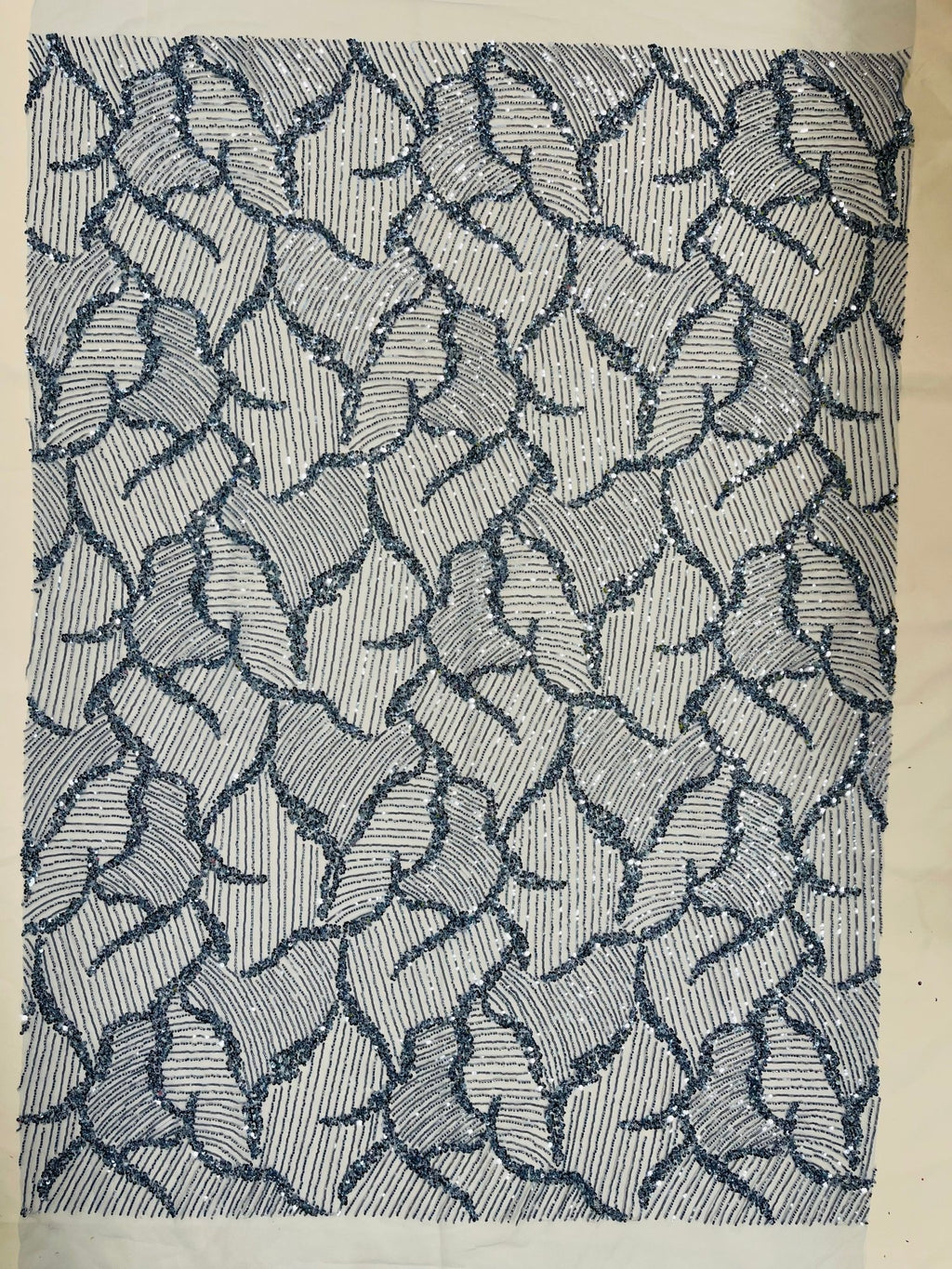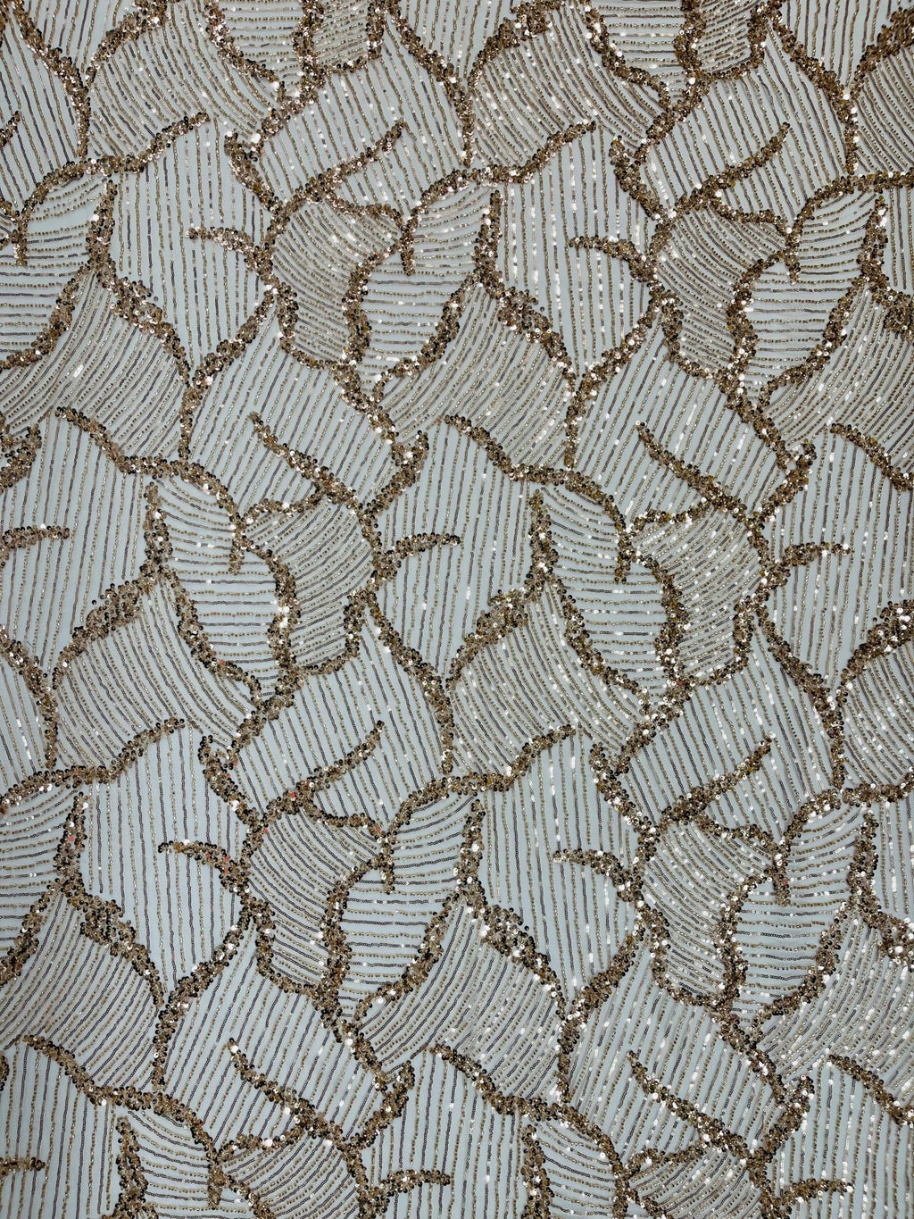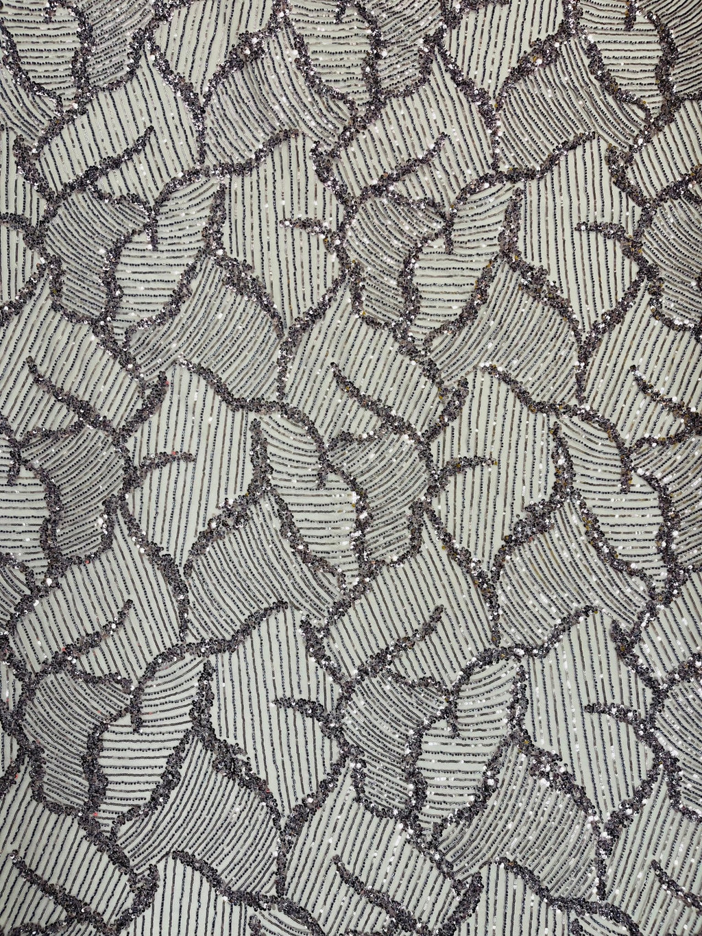 Heavy Beaded Leaf Design on a mesh 54" Wide| New Creation Fabric & Foam Inc.