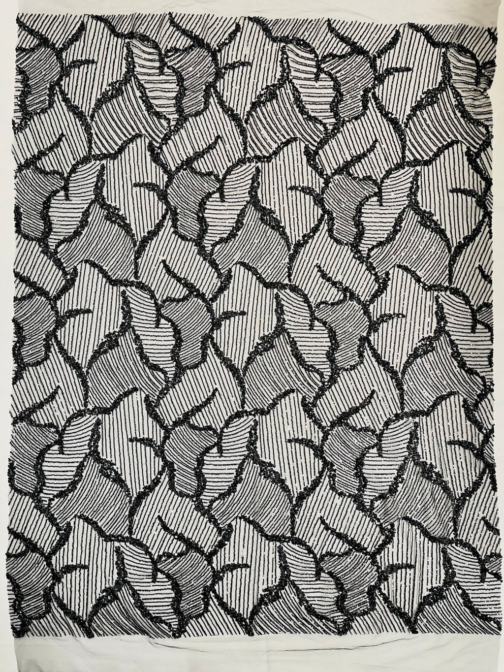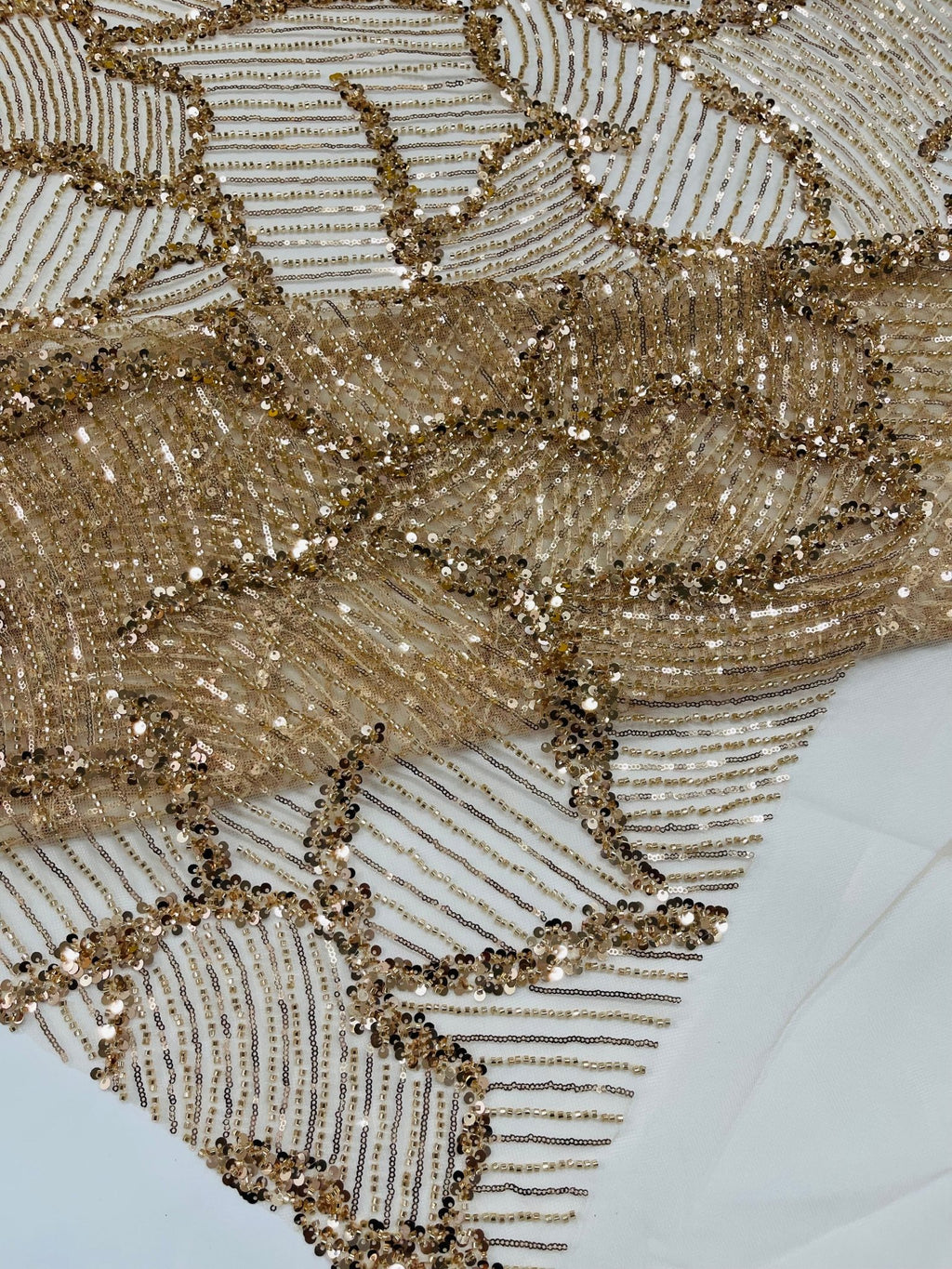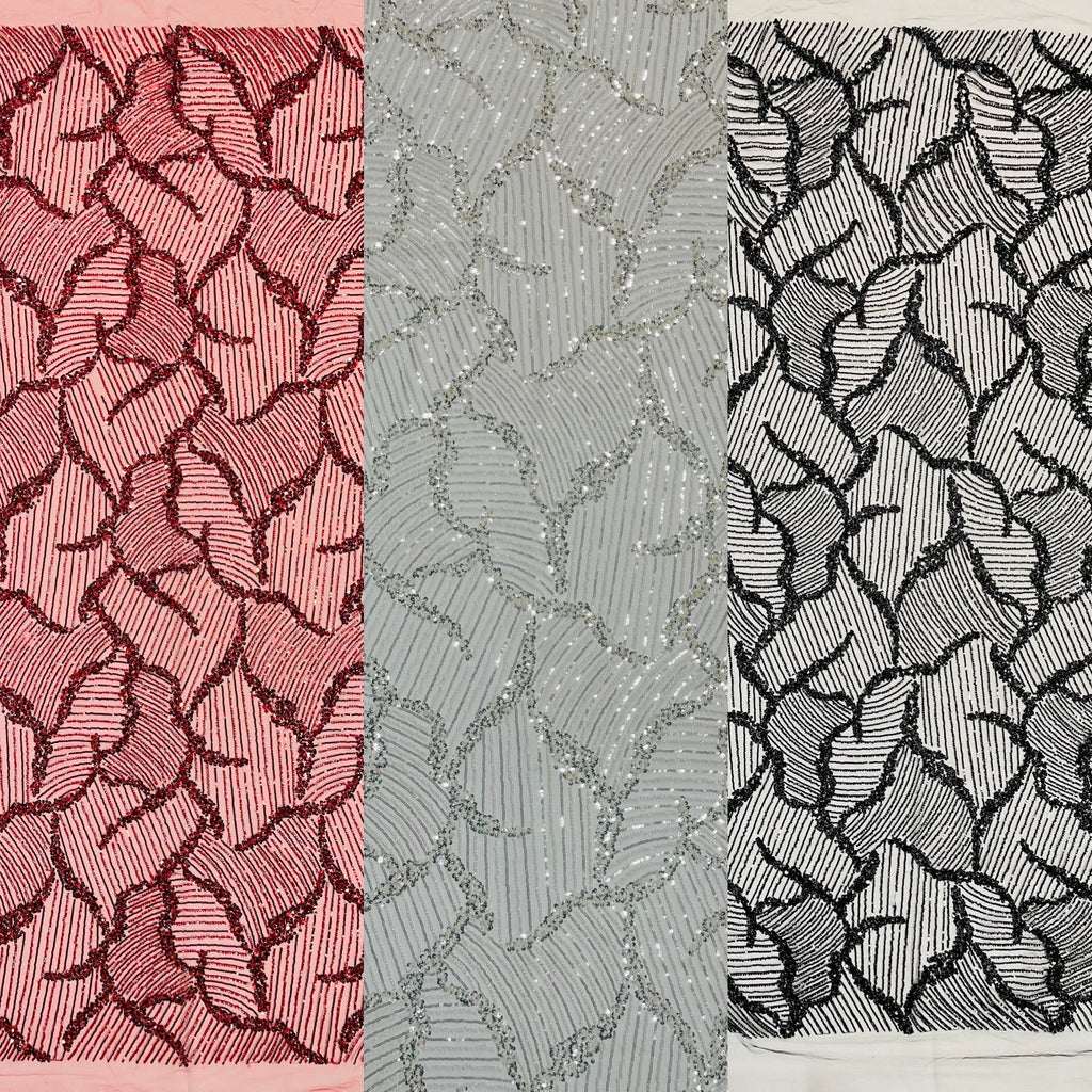 Heavy Beaded Leaf Design on a mesh 54" Wide| New Creation Fabric & Foam Inc.