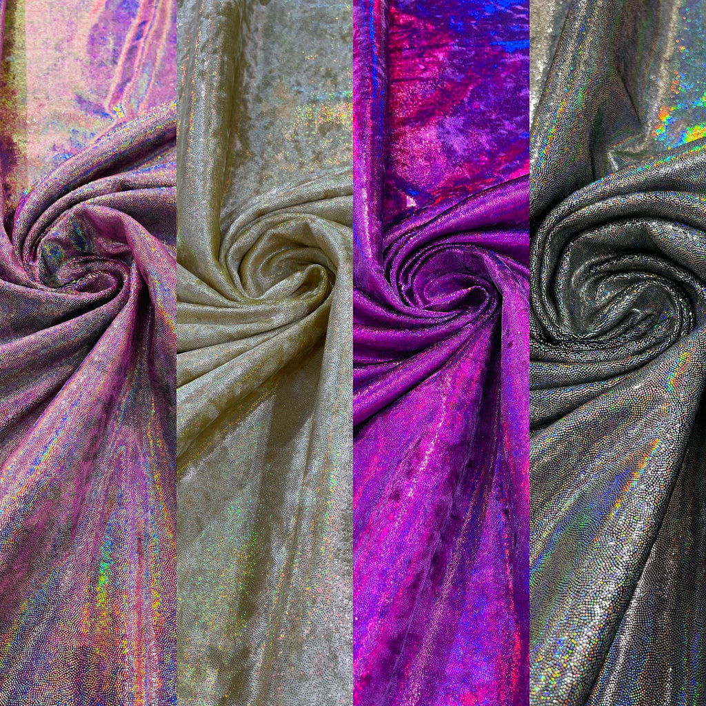 Iridescent Foggy Foil Stretch Velvet By The Yard 4-way stretch Velvet with All-Over Foil, This fabric is ideal for cosplay and performance costumes.