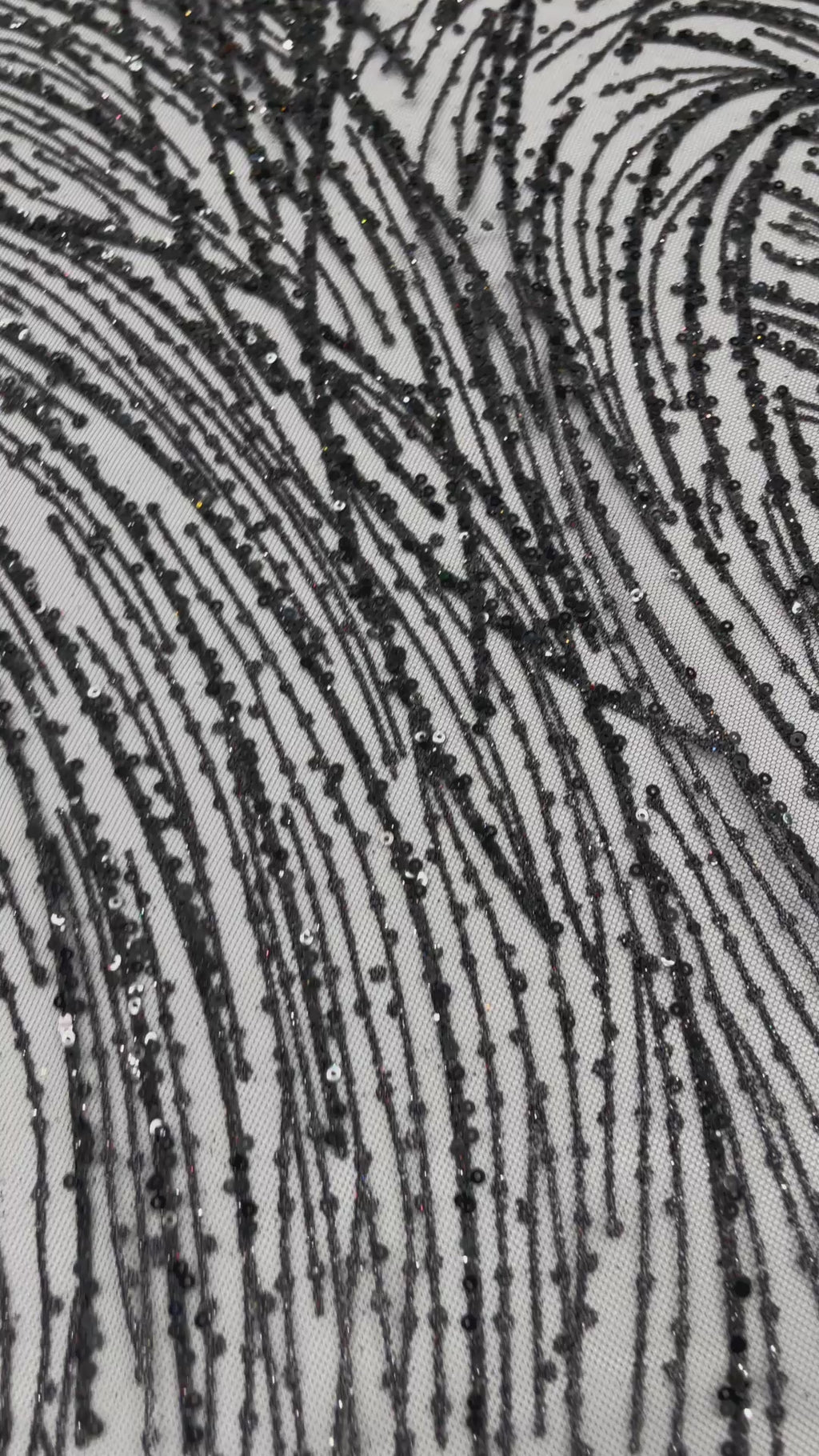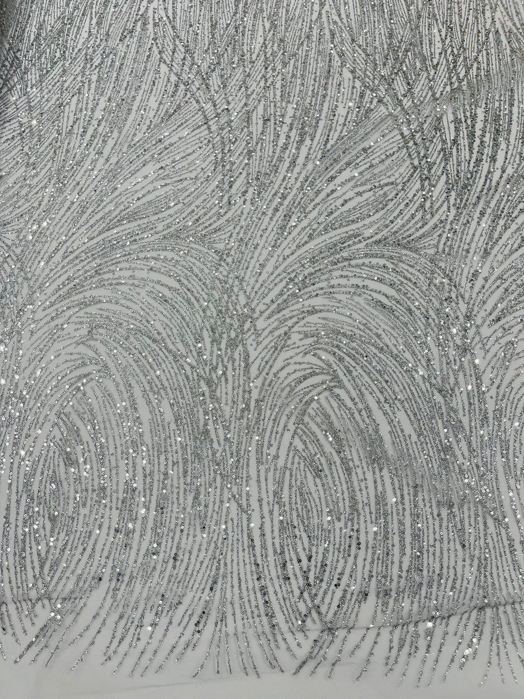 This shiny glitter Fashion design is made up of glue on a Mesh with glitter on the design. This lace is modern but yet classy and the glitter gives it's a beautiful look. The lace can be used for dresses, tablecloths, runners, decoration, skirts, jackets, nightgowns, prom dresses, apparel and much more.