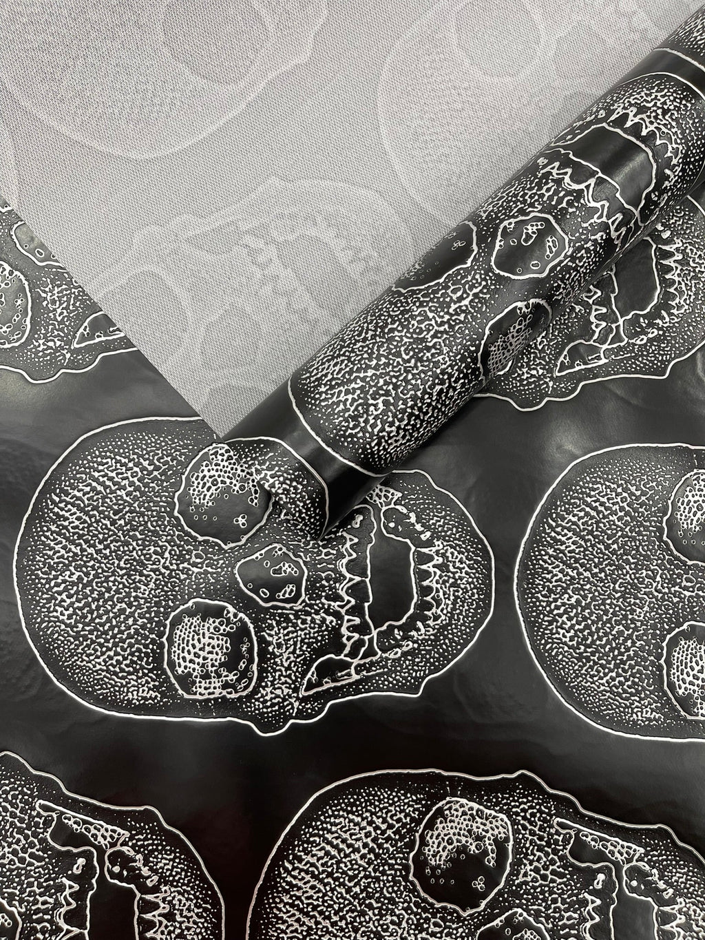 Skull Embossed Fake Leather Upholstery Fabric| New Creations Fabric & Foam Inc.