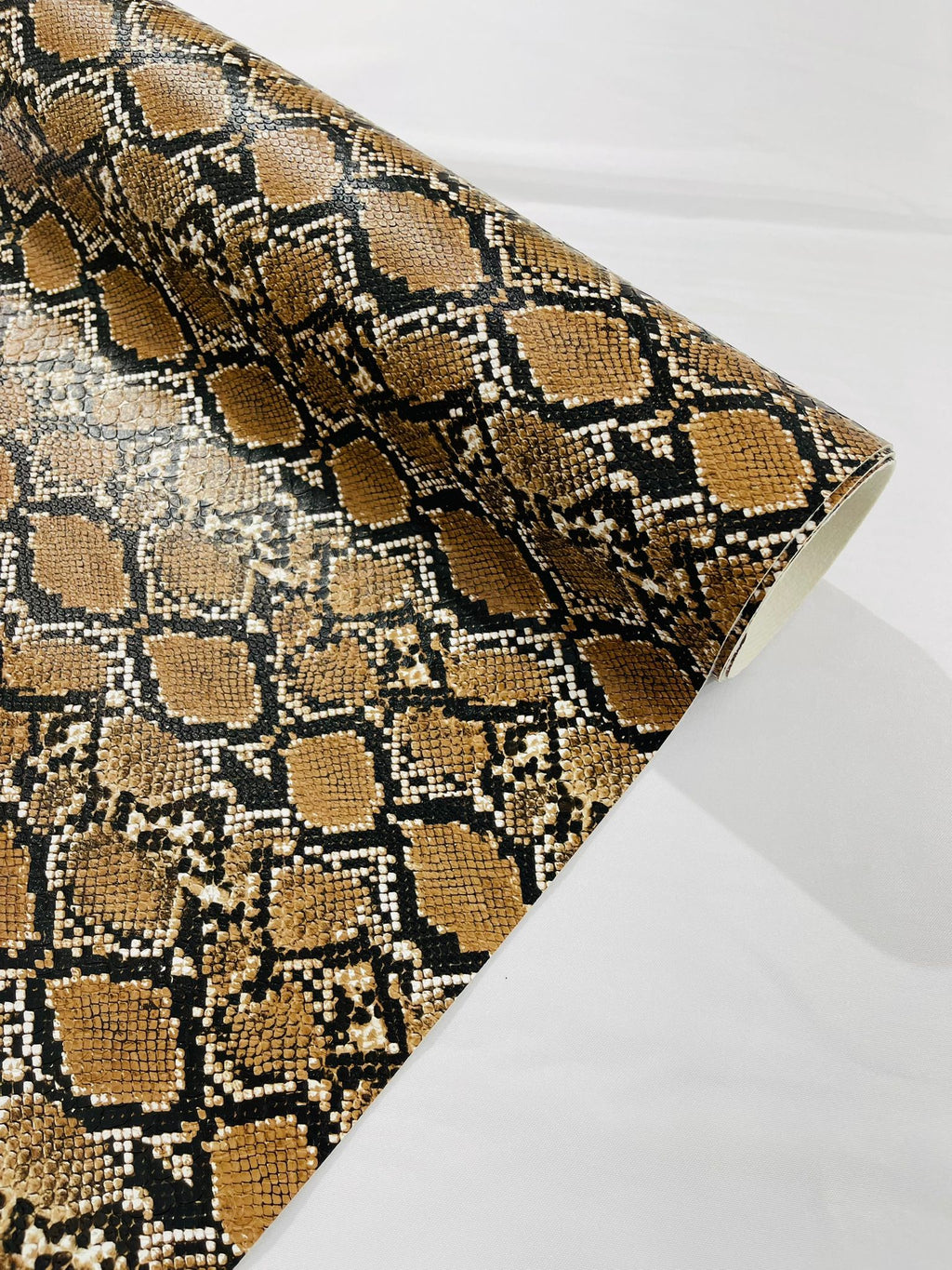 The Viper Snake Vinyl faux fabric is a wonderfully detailed and textured Viper Snake Faux Leather which has a felt backing. Made with a patented combination of Urethane and PVC. Urethane gives this Viper Snake Faux Leather an unequaled real Leather feel and the PVC add to its strength.