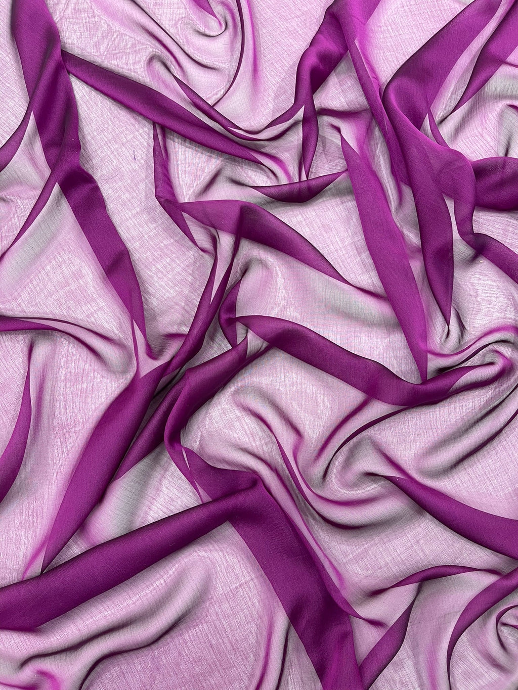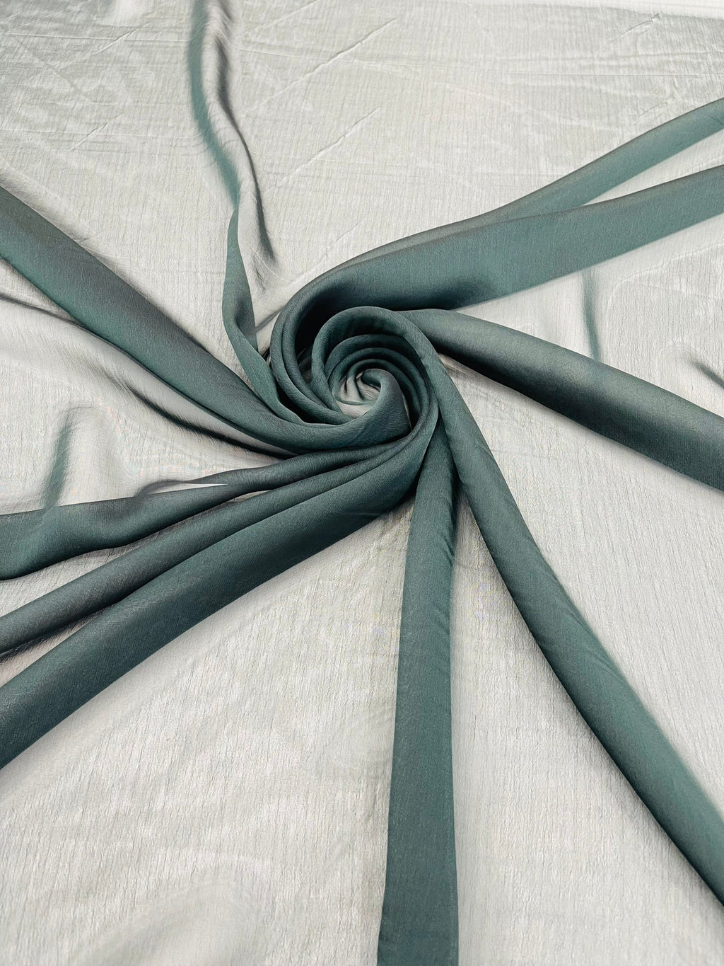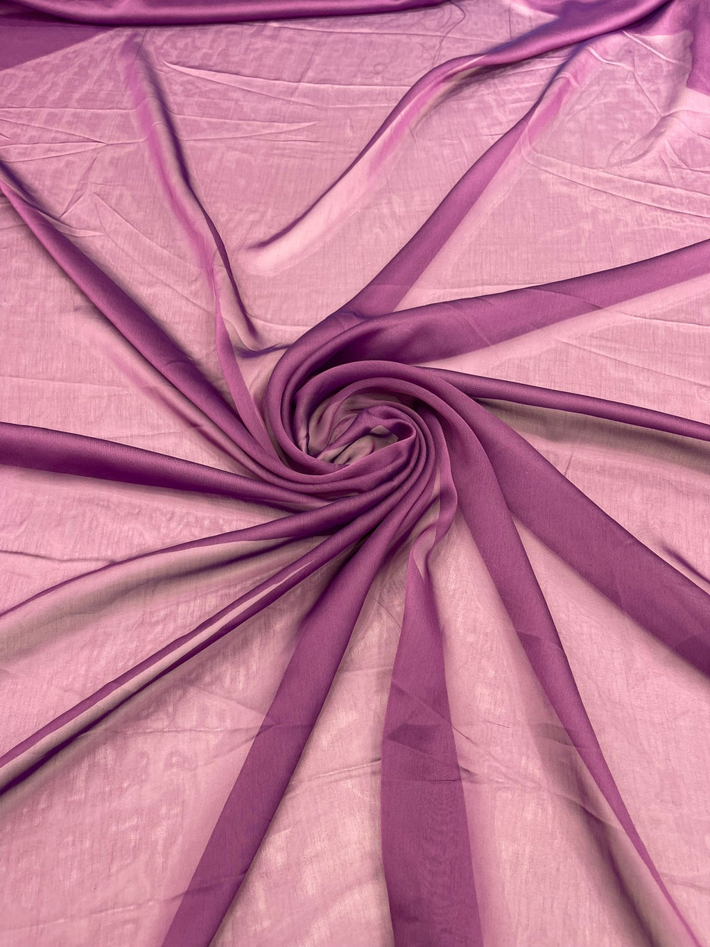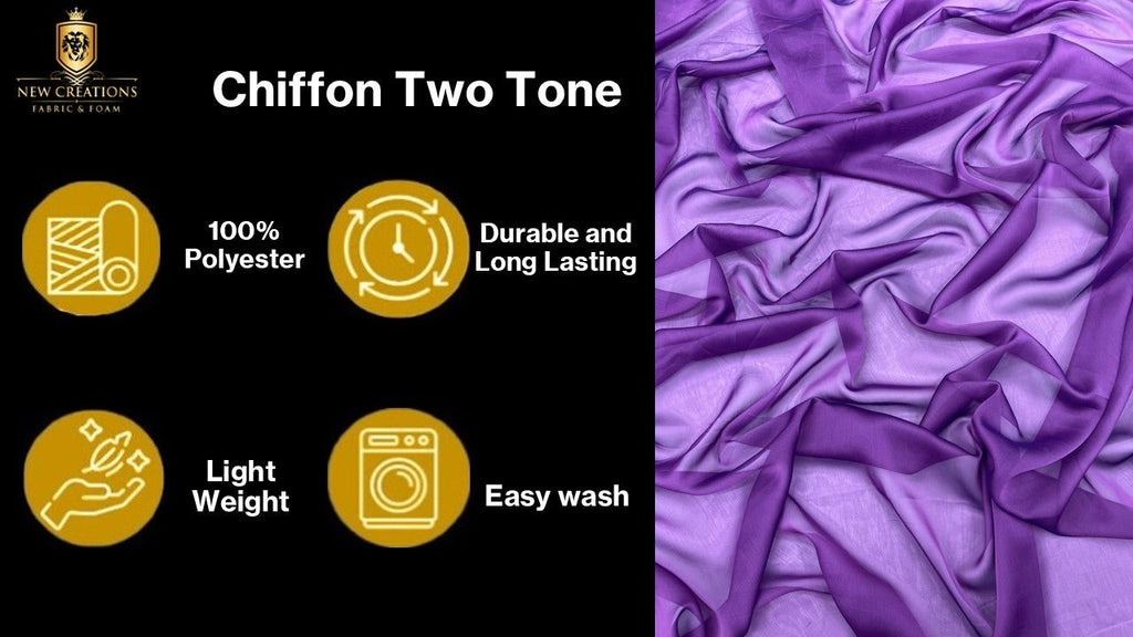 Transform your creative projects with this exquisite two-tone chiffon sheer fabric, available by the yard. This lightweight, flowing material showcases a captivating interplay of colors that shift and shimmer with movement, adding depth and sophistication to any design. Perfect for creating ethereal drapery, elegant scarves, delicate overlays, or adding dreamy layers to fashion pieces. The sheer nature of the fabric allows light to filter through beautifully, creating an enchanting visual effect. The versatile material drapes gracefully and can be layered for varied opacity levels. Ideal for both special occasion wear and home decor projects, this chiffon fabric brings a touch of luxury to whatever you create. The fabric's fine weave ensures smooth handling and excellent drape characteristics. For best results, hand wash or dry clean to maintain the fabric's beautiful characteristics.