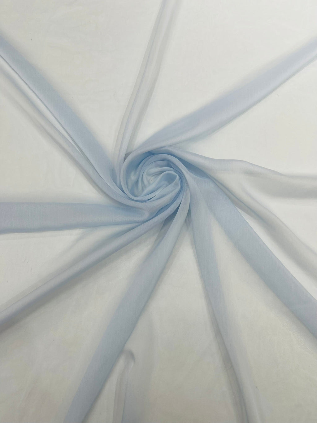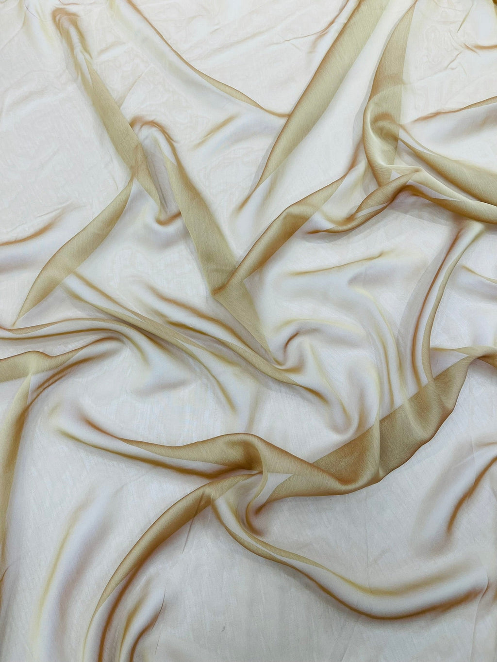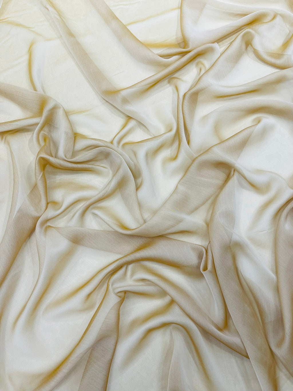 Transform your creative projects with this exquisite two-tone chiffon sheer fabric, available by the yard. This lightweight, flowing material showcases a captivating interplay of colors that shift and shimmer with movement, adding depth and sophistication to any design. Perfect for creating ethereal drapery, elegant scarves, delicate overlays, or adding dreamy layers to fashion pieces. The sheer nature of the fabric allows light to filter through beautifully, creating an enchanting visual effect. The versatile material drapes gracefully and can be layered for varied opacity levels. Ideal for both special occasion wear and home decor projects, this chiffon fabric brings a touch of luxury to whatever you create. The fabric's fine weave ensures smooth handling and excellent drape characteristics. For best results, hand wash or dry clean to maintain the fabric's beautiful characteristics.