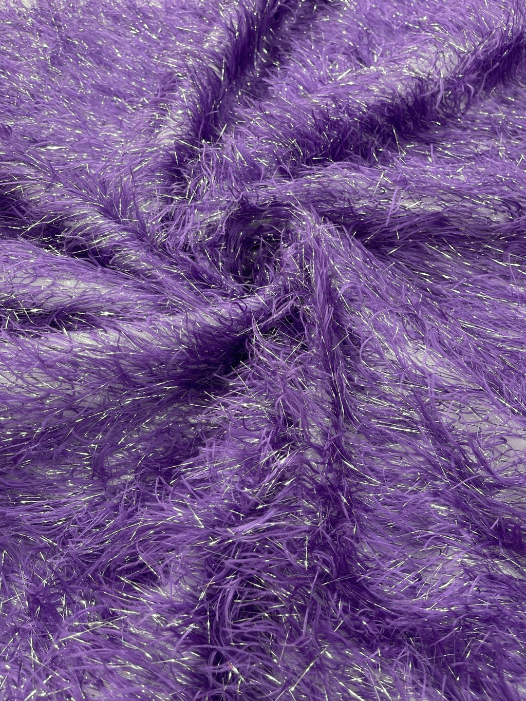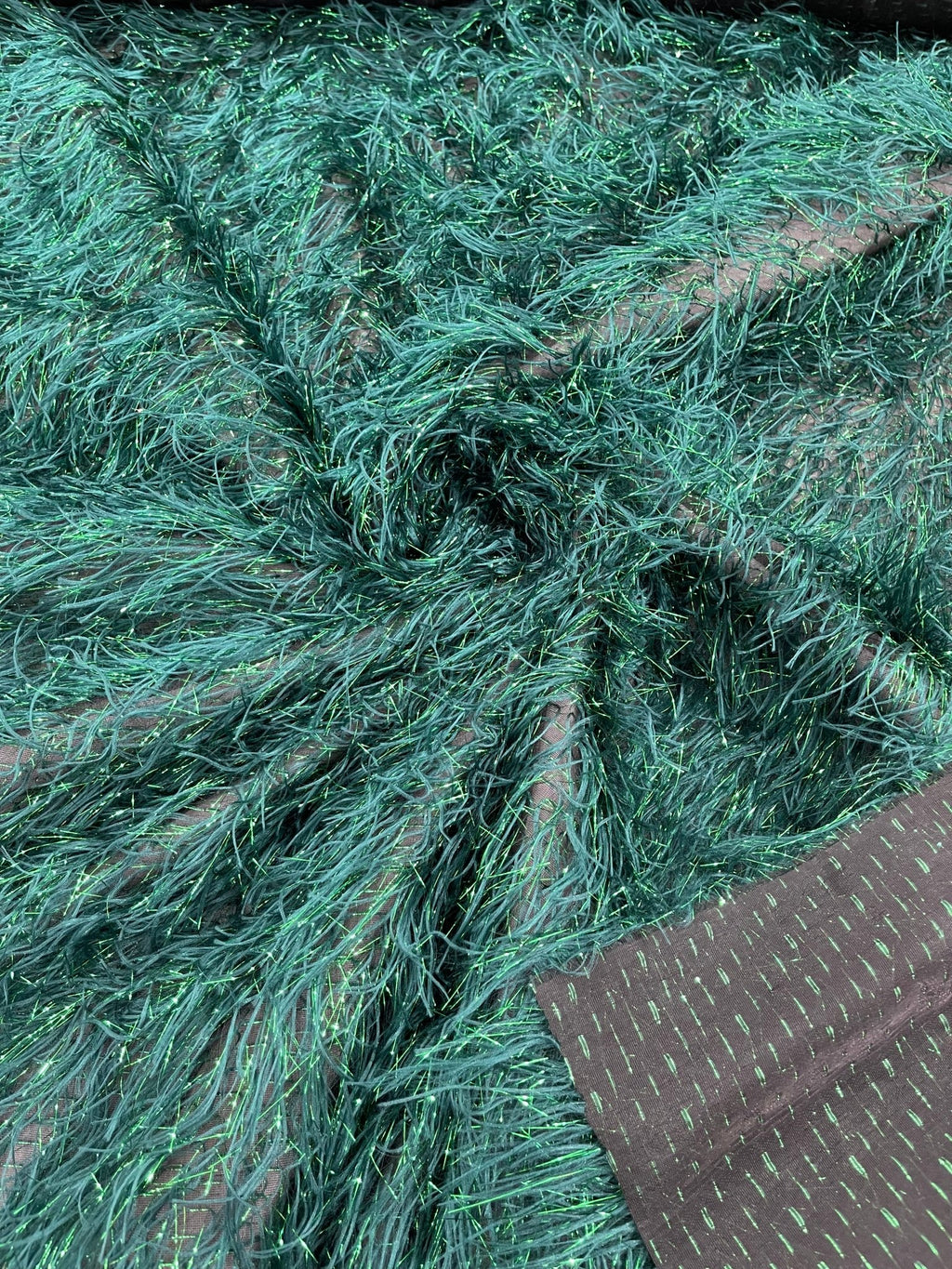 Shaggy Jacquard Faux Ostrich/Eye Lash Feathers Fringe With Metallic Thread (By The Yard)
