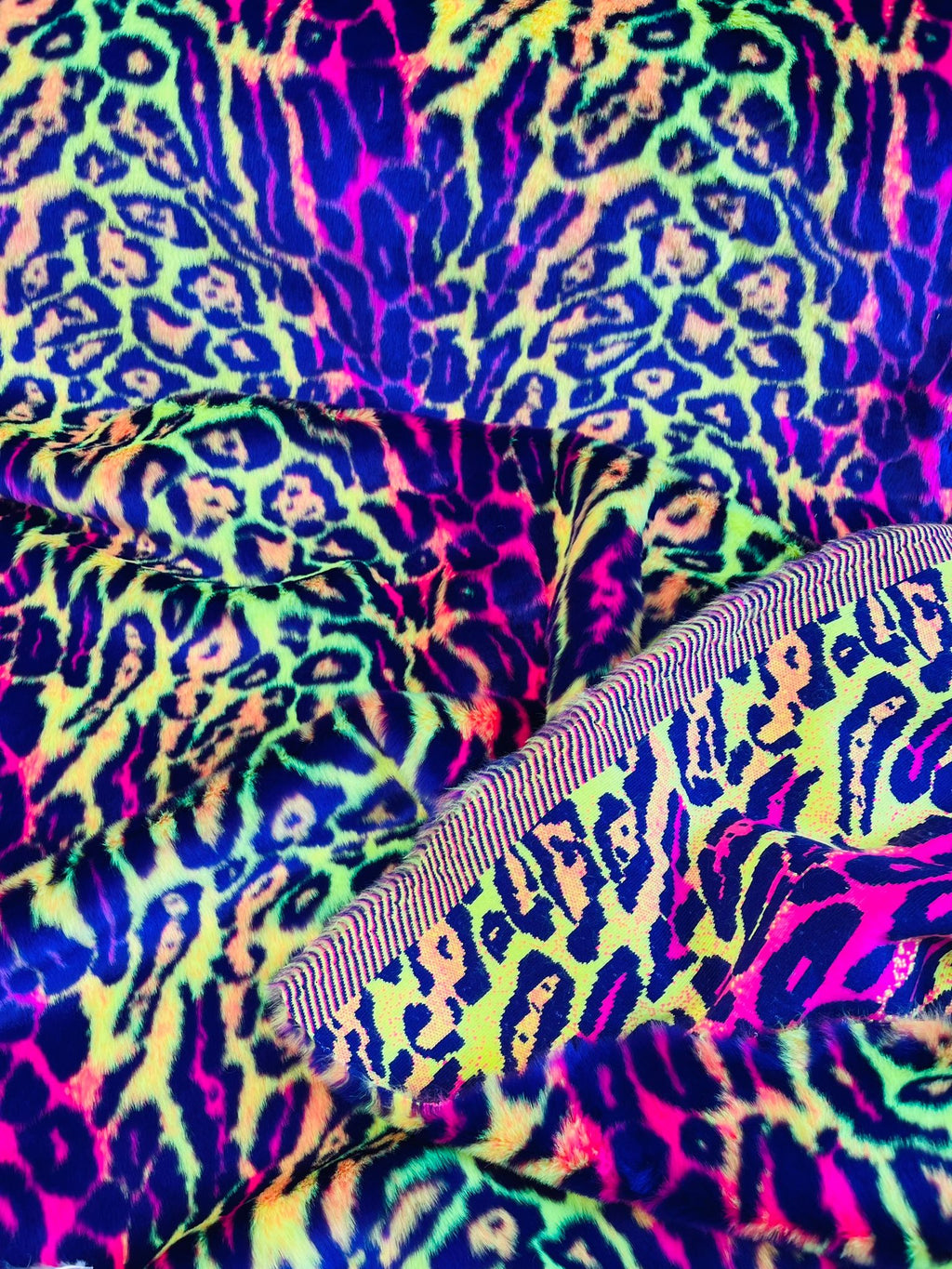 - Vibrant Leopard Pattern: This faux fur fabric features a bold and eye-catching leopard tie-dye pattern that shines under black light.