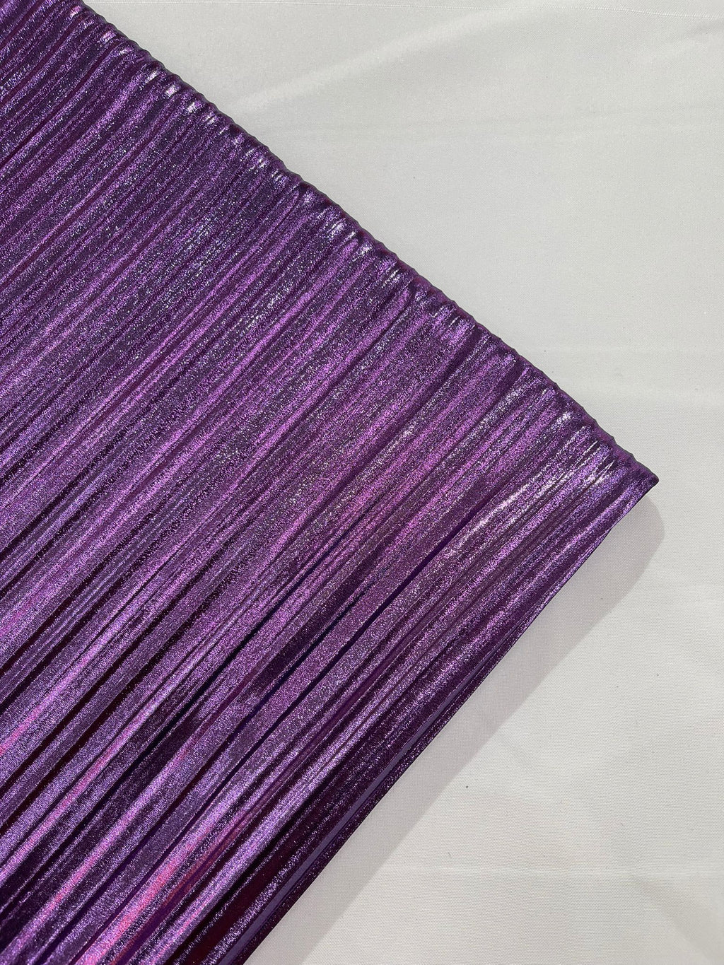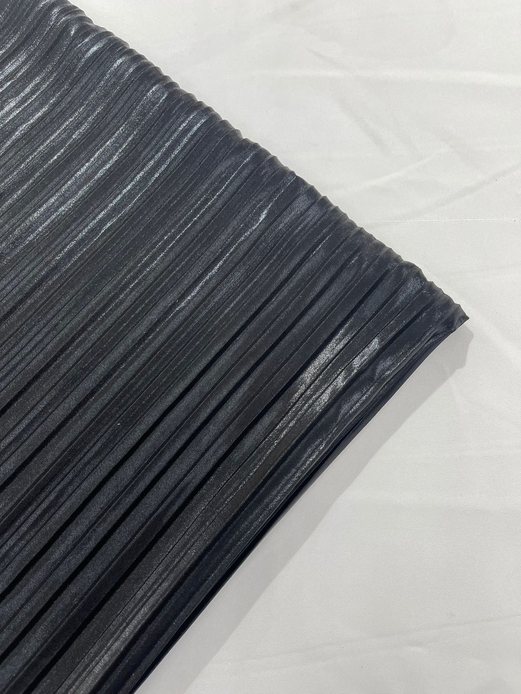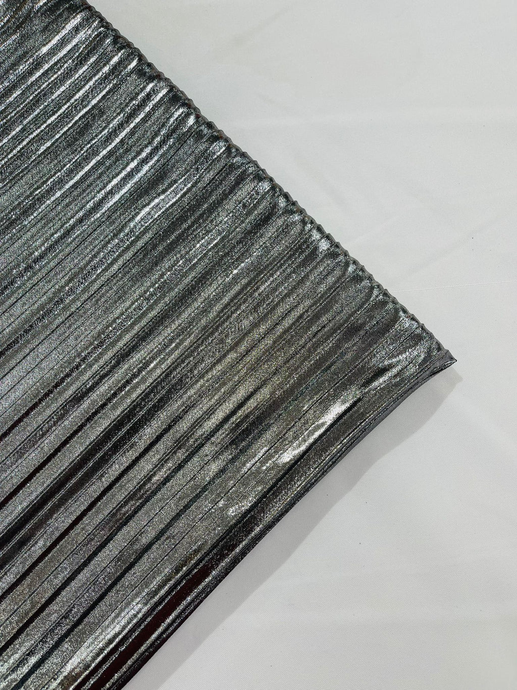 Unleash your inner fashionista with our Titanium Pleated Polyester Fabric! This stunning fabric is a game changer for all your couture lovers out there. Made of exquisite foil covered pleated polyester, it is designed to stretch in the direction of the folds, making it incredibly versatile and perfect for creating iconic statement pieces. Sleek, elegant and absolutely captivating, our Titanium Pleated Polyester Fabric feels luxurious to the touch and exudes pure sophistication. The high-quality material ensures it drapes beautifully, giving your designs a flowy and ethereal vibe. Whether you want to create a chic gown or a show-stopping top, this fabric is guaranteed to elevate your designs to the next level. It's perfect for adding texture and movement to your creations and will undoubtedly turn heads everywhere you go. Get ready to unleash your creativity and make a statement with our Titanium Pleated Polyester Fabric. It's time to let your imagination run wild and create something truly extraordinary
