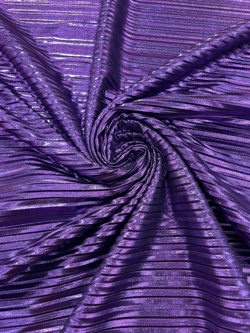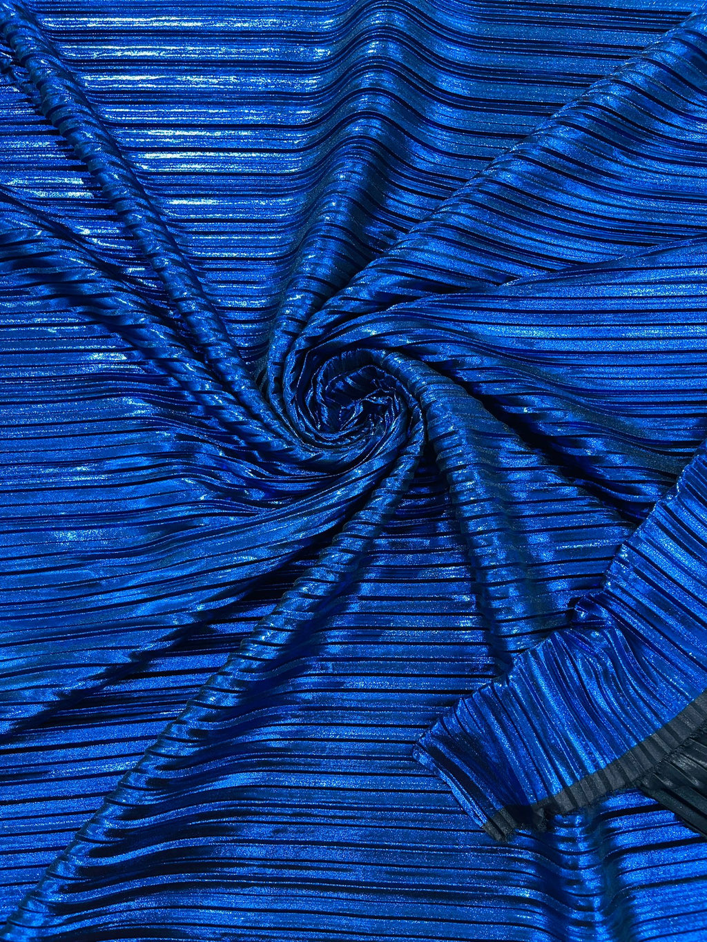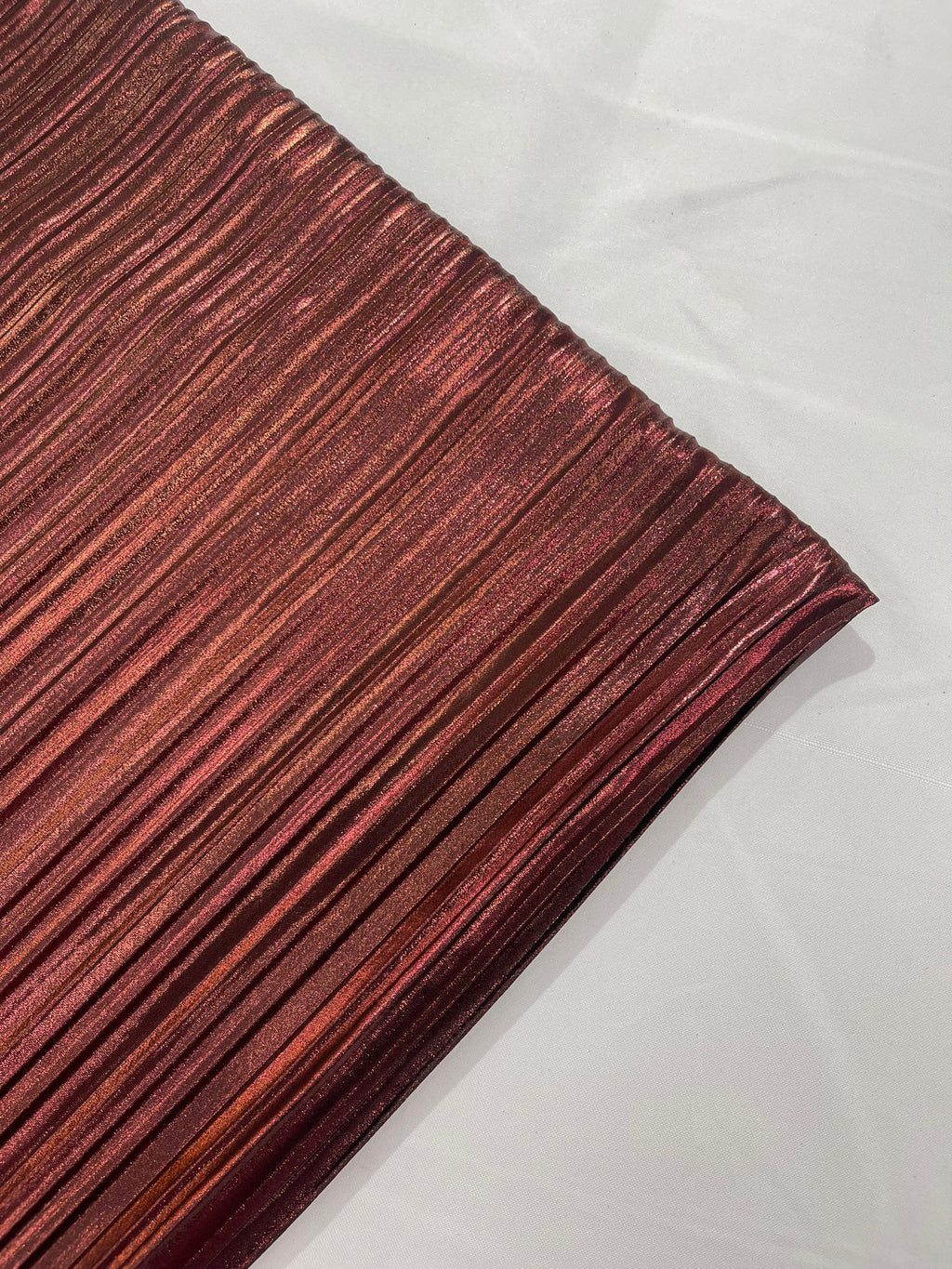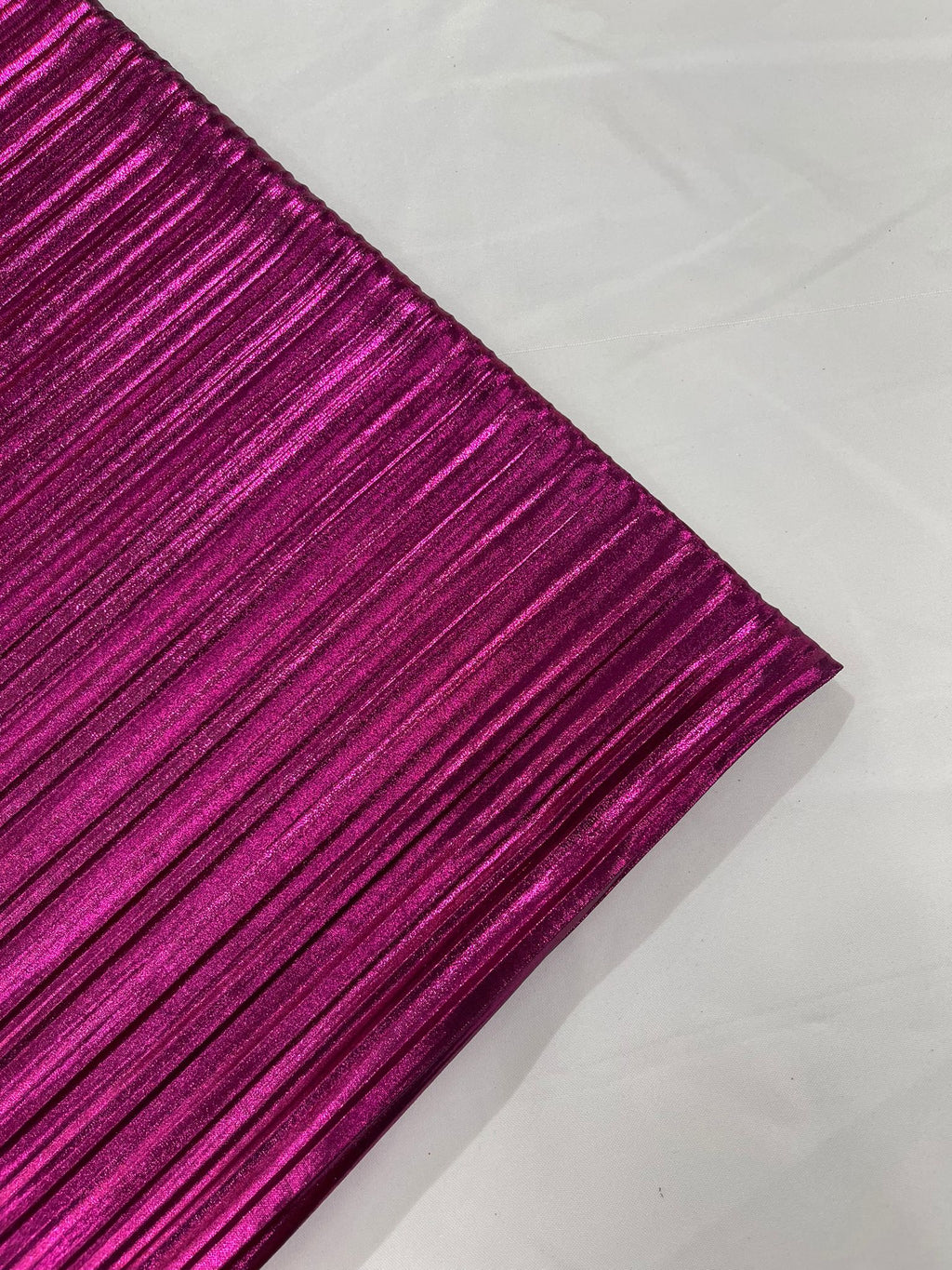 Unleash your inner fashionista with our Titanium Pleated Polyester Fabric! This stunning fabric is a game changer for all your couture lovers out there. Made of exquisite foil covered pleated polyester, it is designed to stretch in the direction of the folds, making it incredibly versatile and perfect for creating iconic statement pieces. Sleek, elegant and absolutely captivating, our Titanium Pleated Polyester Fabric feels luxurious to the touch and exudes pure sophistication. The high-quality material ensures it drapes beautifully, giving your designs a flowy and ethereal vibe. Whether you want to create a chic gown or a show-stopping top, this fabric is guaranteed to elevate your designs to the next level. It's perfect for adding texture and movement to your creations and will undoubtedly turn heads everywhere you go. Get ready to unleash your creativity and make a statement with our Titanium Pleated Polyester Fabric. It's time to let your imagination run wild and create something truly extraordinary