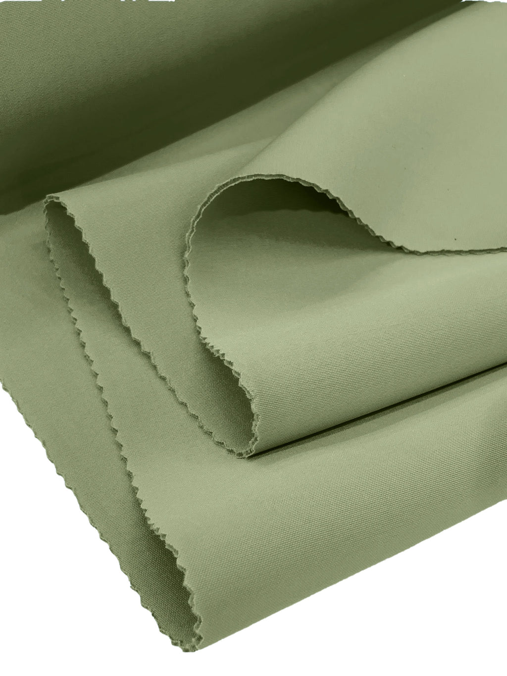 Neoprene Scuba (3 mm) is a soft, thick, and stretchy fabric. Sourced from a blend of polyester and spandex, this fabric is double-knit, meaning it features two knitted layers interconnected by an interlock core. This manufacturing process makes Neoprene Scuba (3 mm) fabric stretch 20% vertically (from selvedge to selvedge) and 5% horizontally (parallel to the selvedge), in addition to varying in this thickness between 2 millimeters to 3 millimeters. Measuring 58 inches wide, this fabric has a 350 GSM, and weighs approximately 19.3 ounces per linear yard.