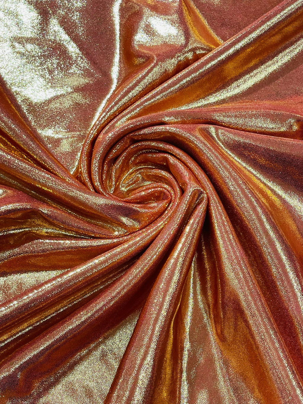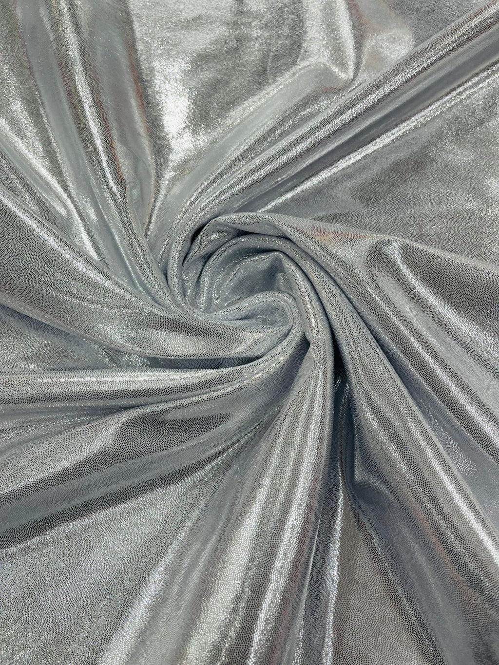 This 4-way stretch fabric is 80% Nylon and 20% Spandex with a 4-way stretch. It features a reflective and shimmering. This foggy Foil its Ideal for costumes, dresses, leggings, clothing, nightgowns,  prom dresses, swim suits, interior decor and much more..