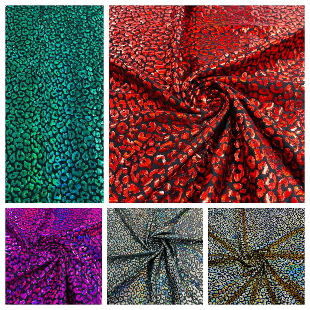 Foil leopard print on a stretch spandex fabric | New Creations Fabric & Foam