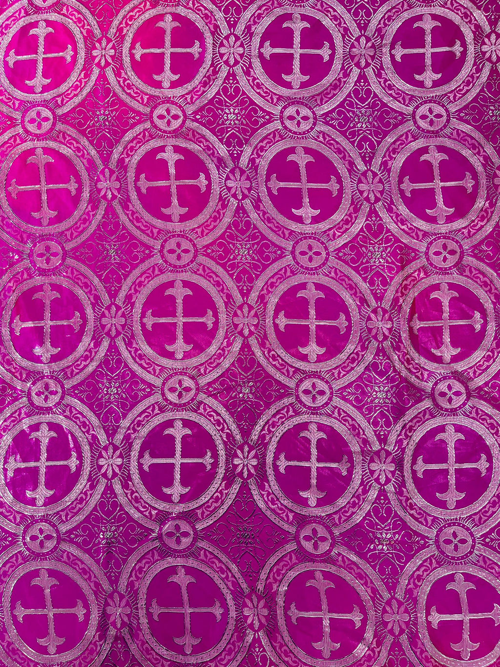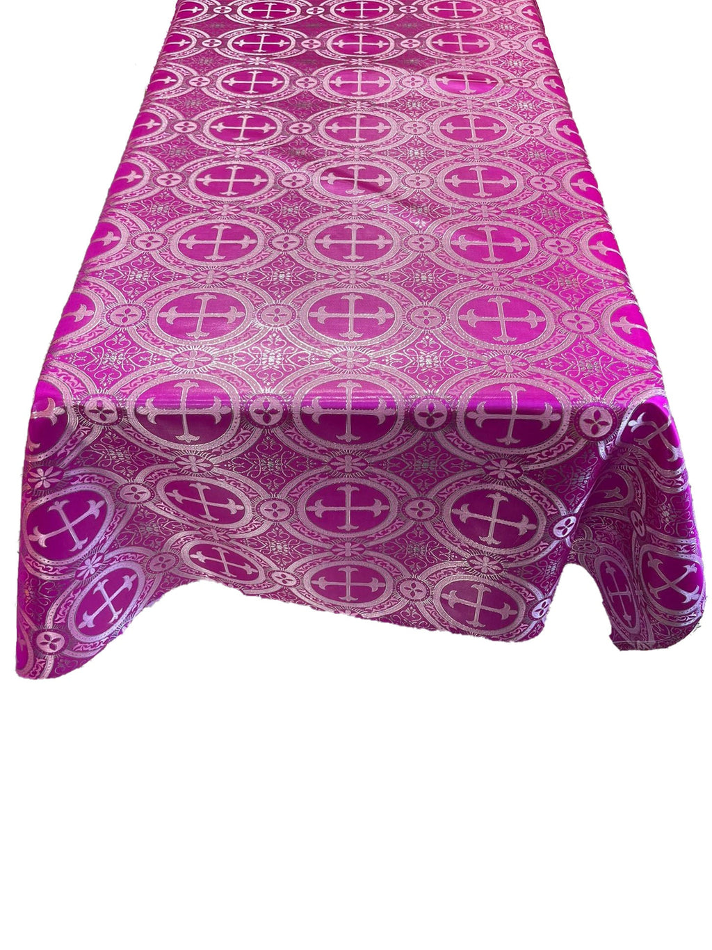 Fuchsia/Silver - Rectangular Metallic Cross Brocade Jacquard Satin Tablecloth Overlay/Religious Brocade/Liturgical Fabric/Church.