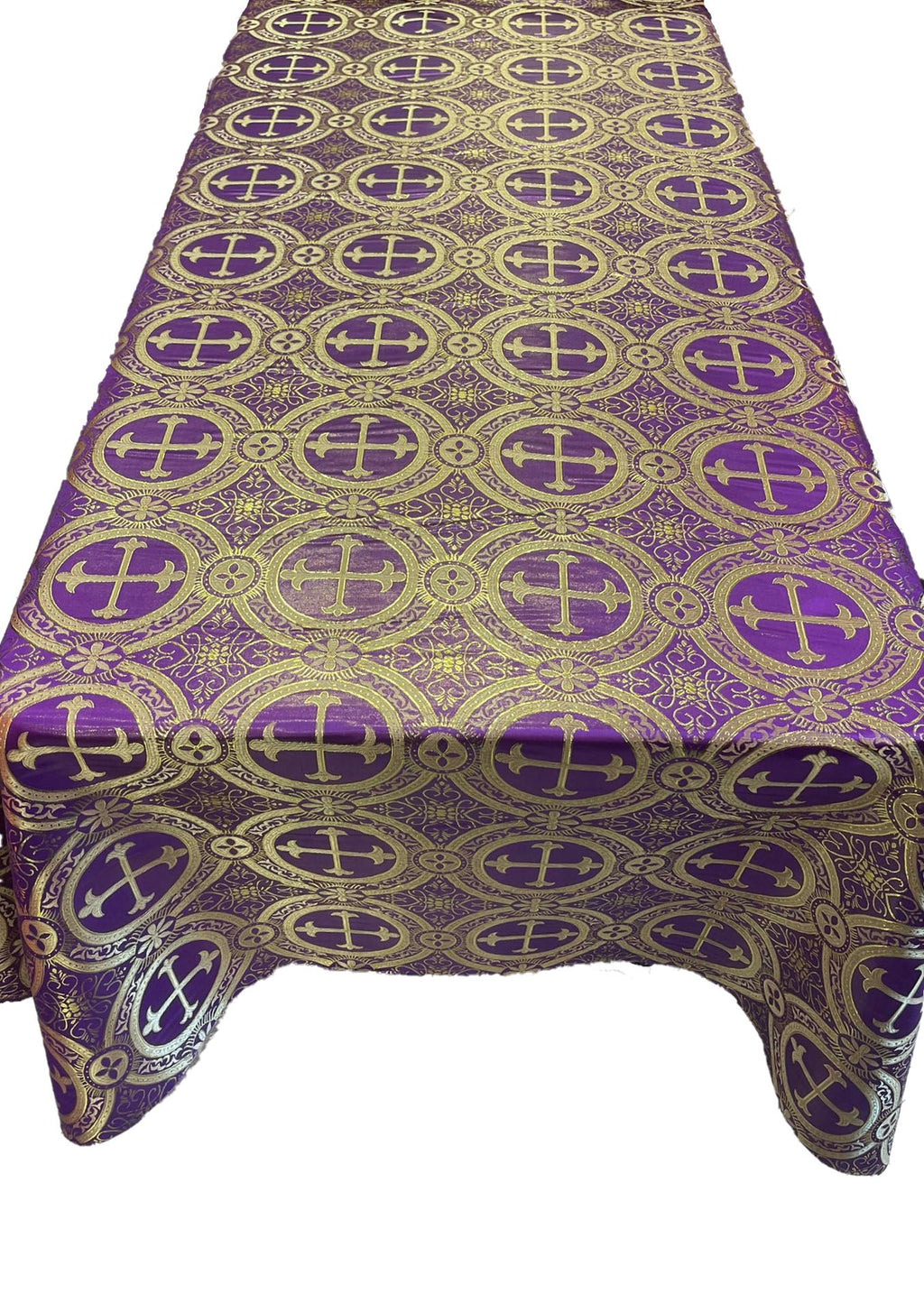 Purple/Gold - Rectangular Metallic Cross Brocade Jacquard Satin Tablecloth Overlay/Religious Brocade/Liturgical Fabric/Church.