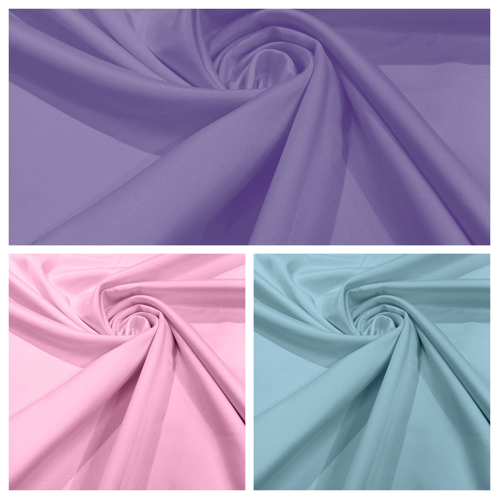 Given the fabric's medium weight and sturdiness, it can also be used for table covers, drapery, sashes, and other home and event decoration projects. Thousands of yards in stock in 35 different colors.