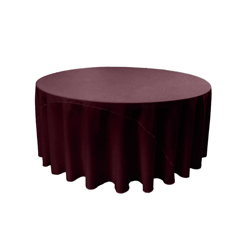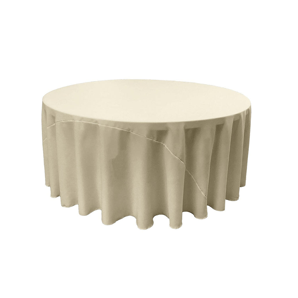 Our round tablecloth is used on any round table as cover or an overlay. This size is often used for round tables at home. The tablecloth is made with 100% premium polyester, which is one of the most durable fabrics in the market and is wrinkle and stain resistant. The tablecloth is made in 1 single (SEAMLESS) panel in a symmetrical pattern to ensure the size to be round and that the tablecloth would remain perfectly round and to the size after years of use and wash. This tablecloth is made in our factory in USA, to the highest standards