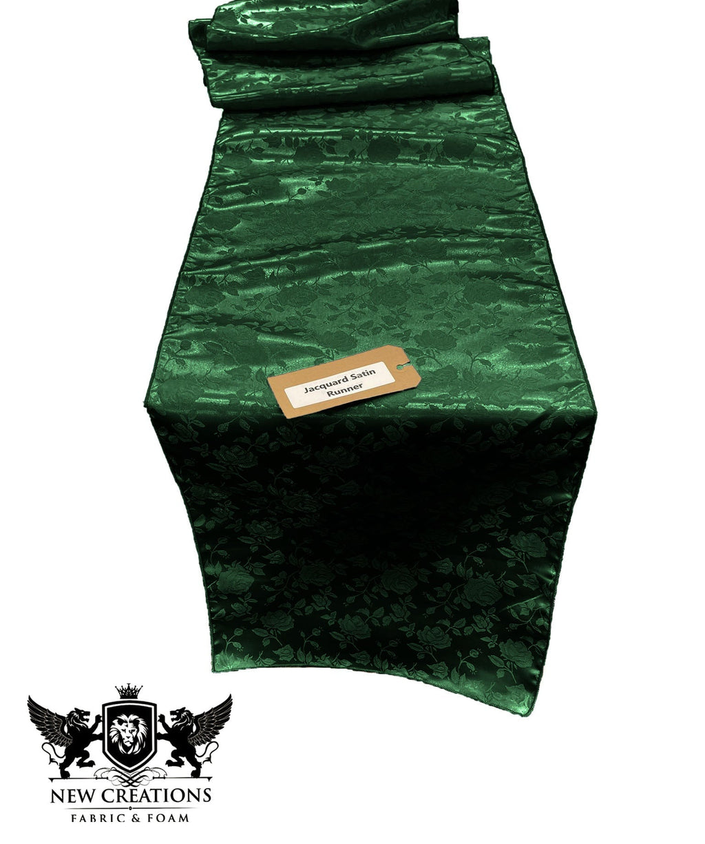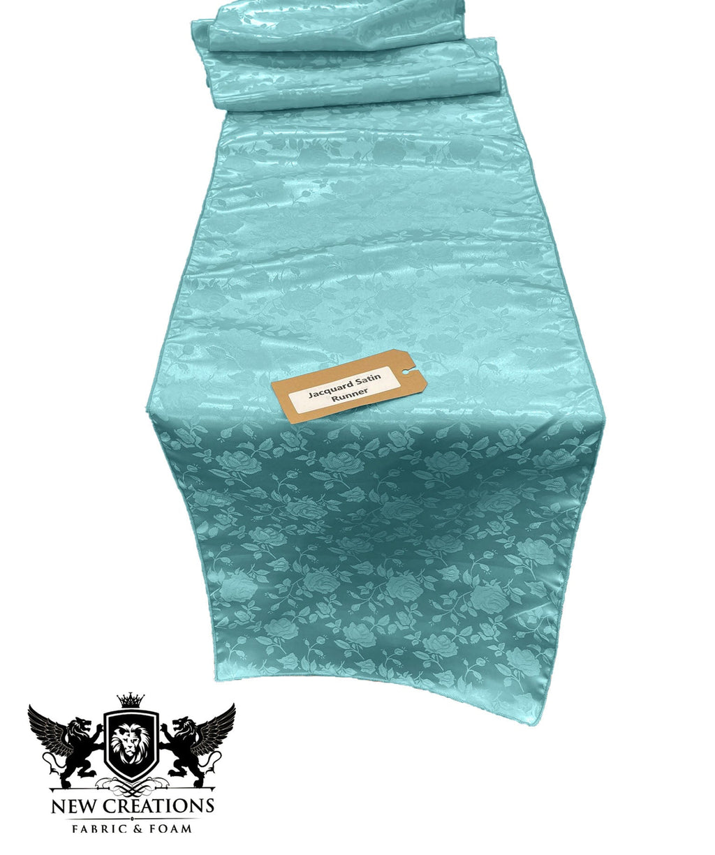 This elegant satin runner adds a touch of romance to any table setting. Crafted of luxurious jacquard satin adorned with a repeating rose motif, it effortlessly elevates the atmosphere. its generous size allows it to drape gracefully down the full length of your table. The satin material lends a silky softness that feels lovely to the touch while remaining durable enough for frequent use. Its neutral ecru hue makes it a versatile accent, pairing beautifully with tableware and décor of any style or color palette. Wipe clean as needed to maintain its lustrous sheen. This quality satin runner from New Creations Fabric & Foam Inc. will enhance your special events in refined style for years to come.