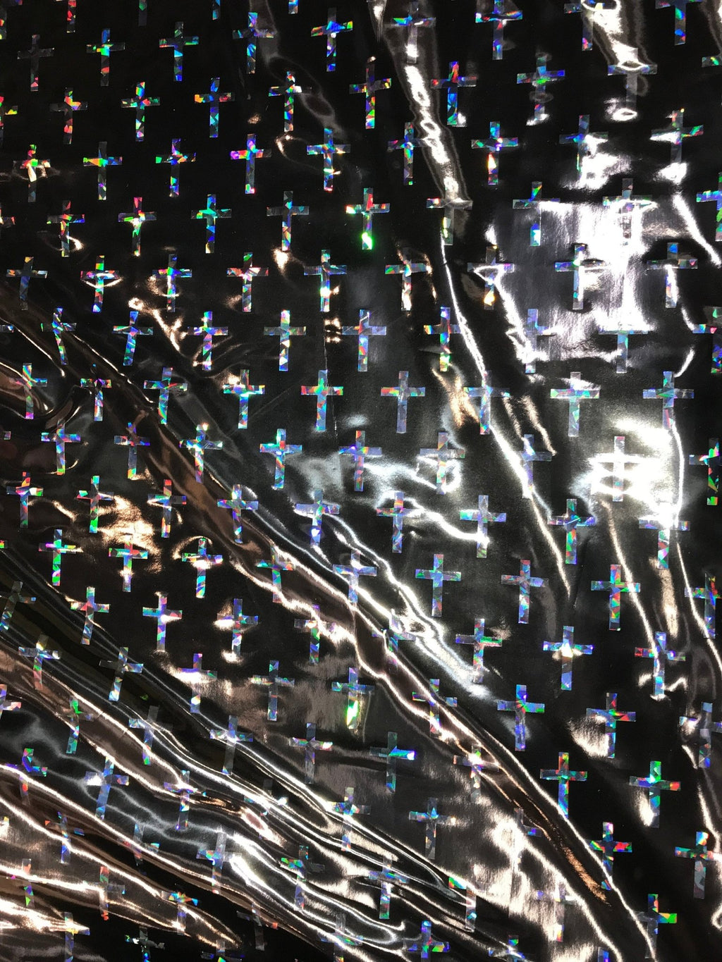 New Creations Fabric & Foam Inc, 58" Wide Polyester Spandex Shiny Faux Vinyl 2 Way Stretch Fabric with Hologram/Iridescent Cross