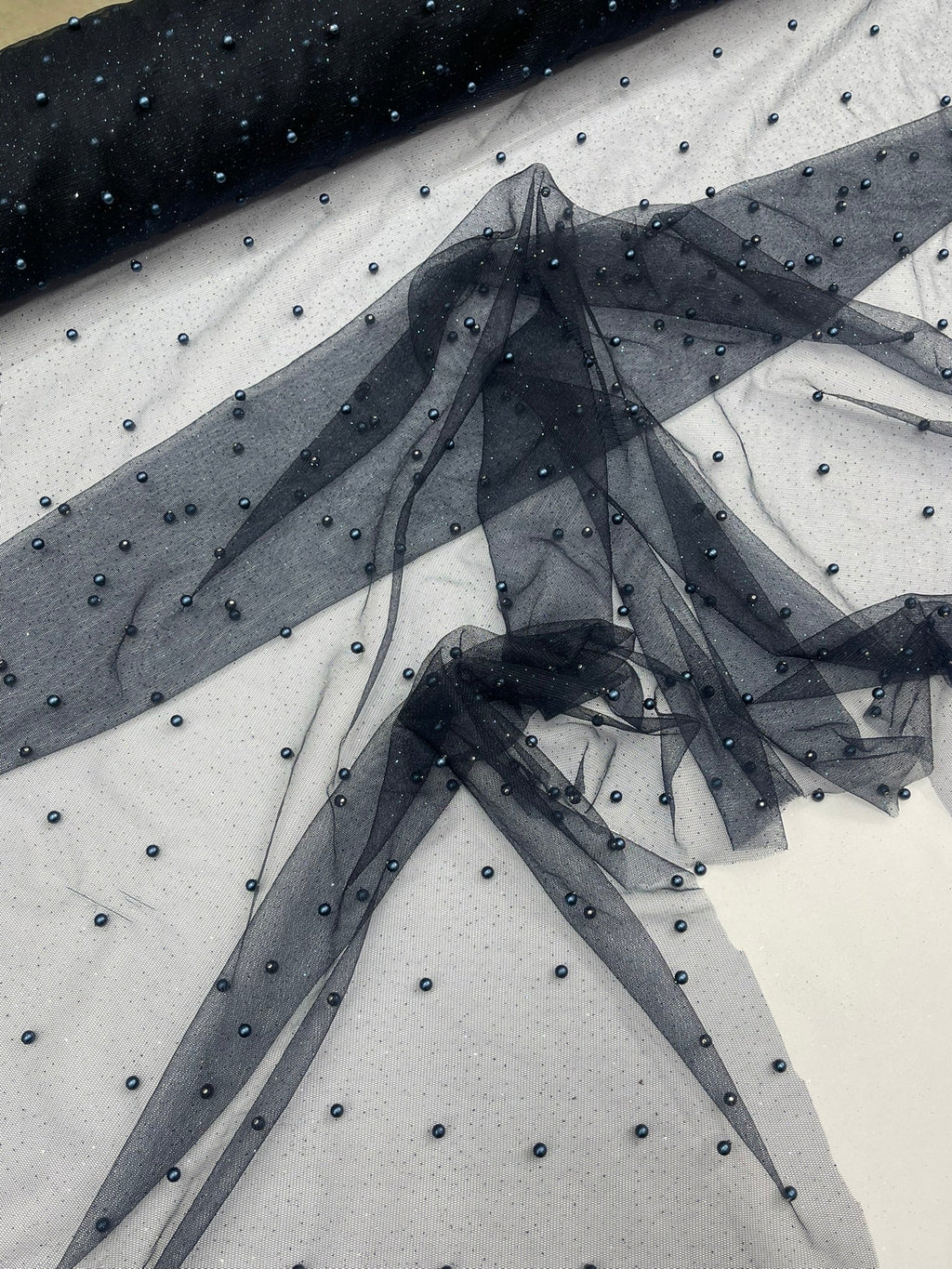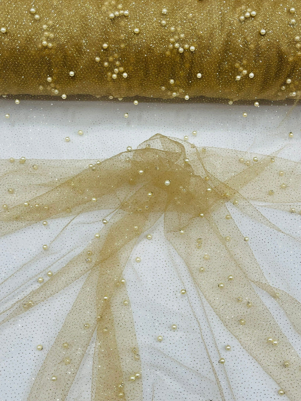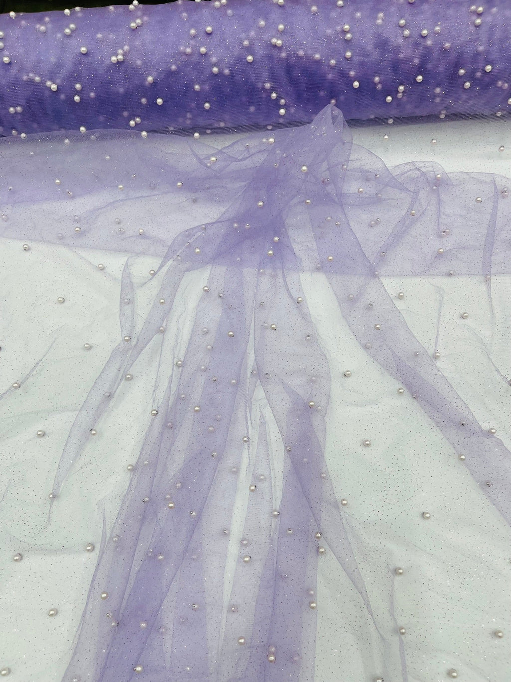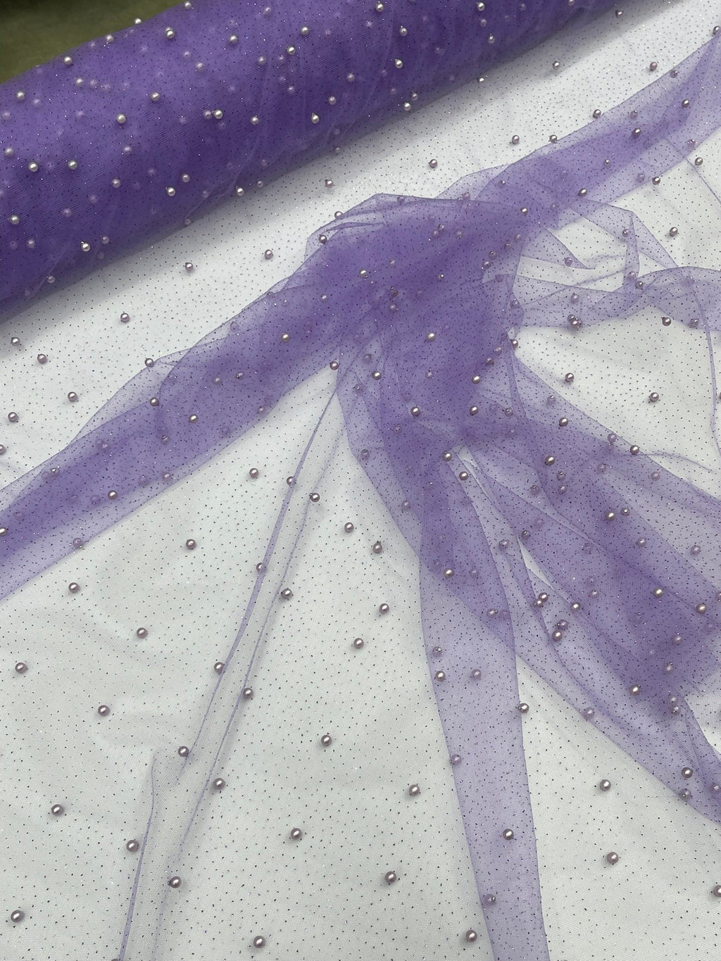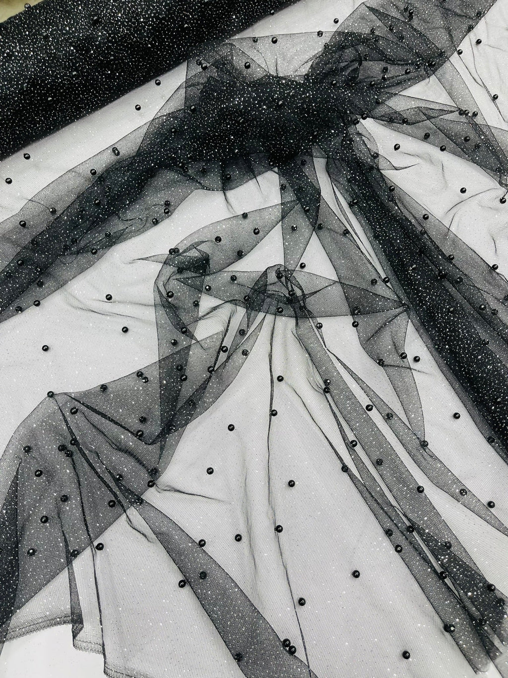 This Glitter Studded mesh fabric embroidered with pearls, It is a 2-way stretch mesh fabric. width of 60" wide this fabric is suitable for tailoring of final and wedding dresses, skirts, corsets and décor.