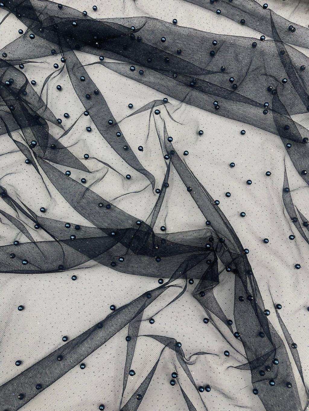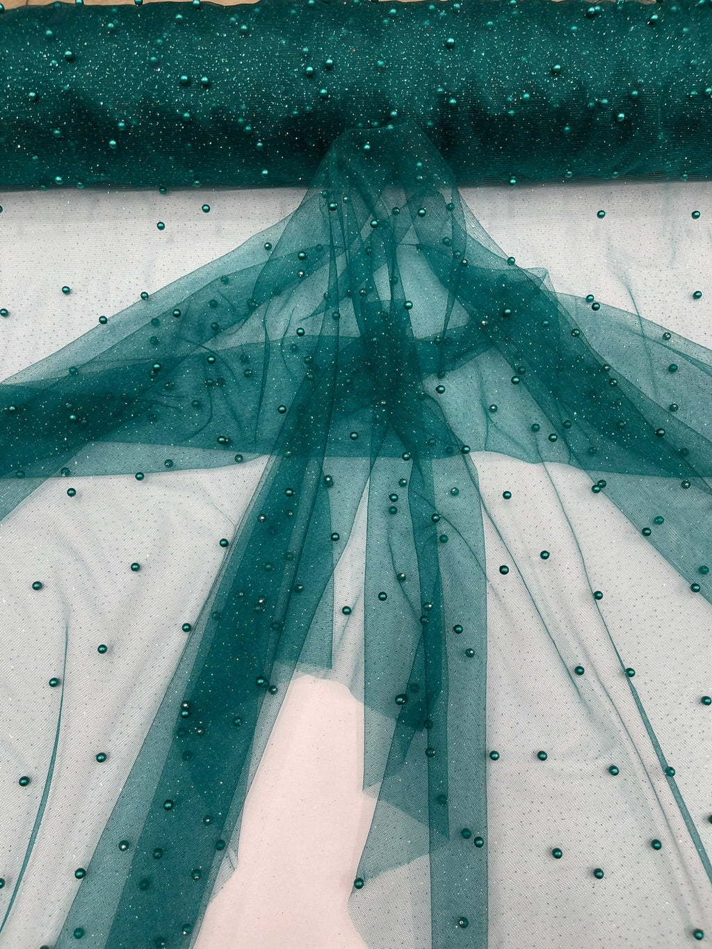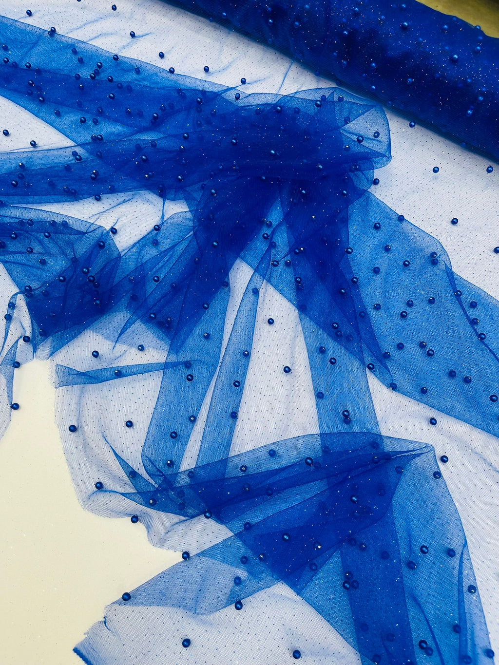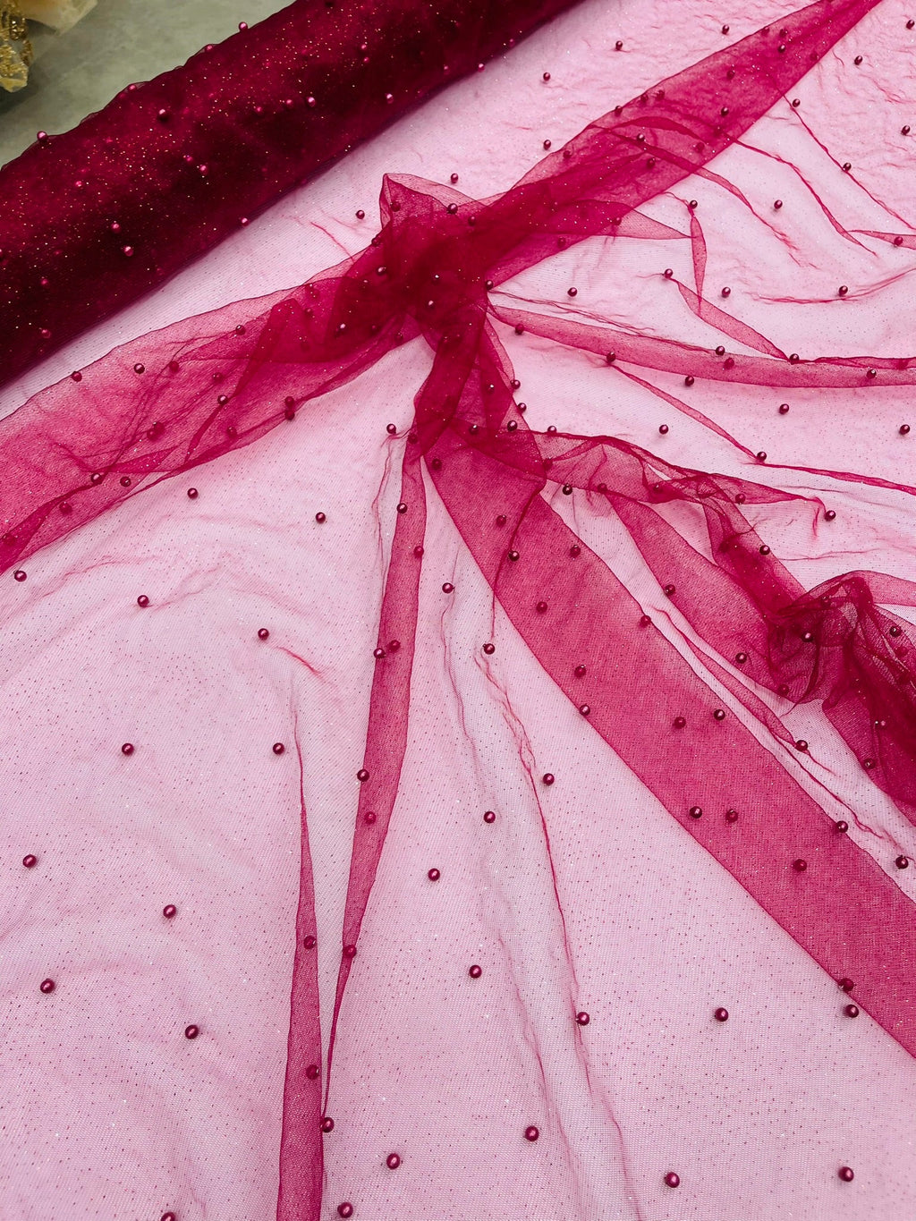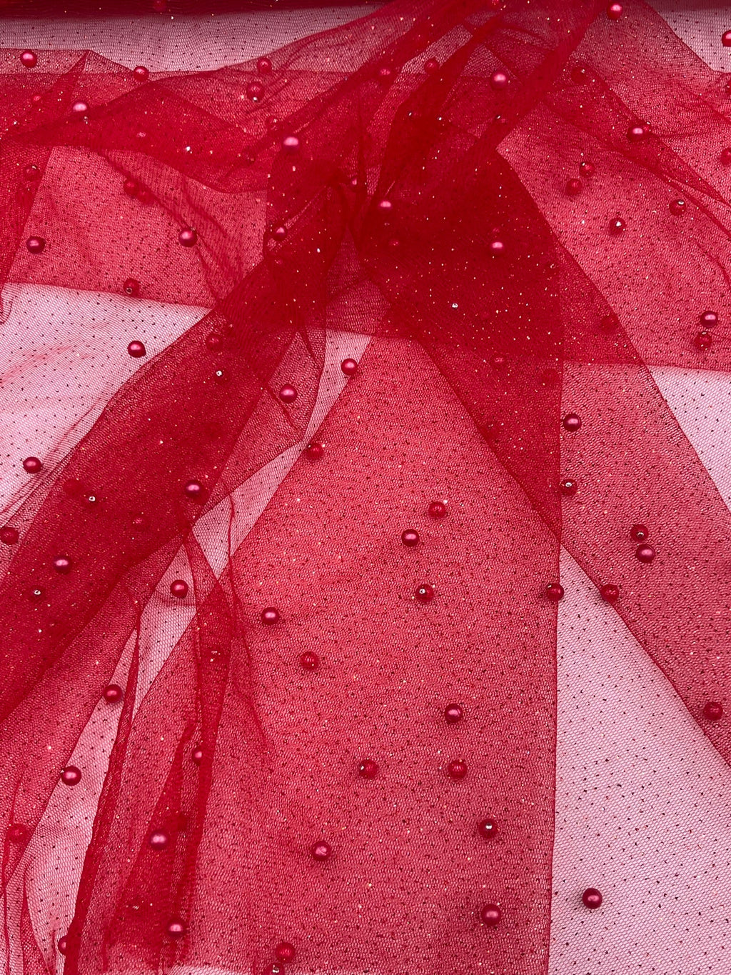 This Glitter Studded mesh fabric embroidered with pearls, It is a 2-way stretch mesh fabric. width of 60" wide this fabric is suitable for tailoring of final and wedding dresses, skirts, corsets and décor.