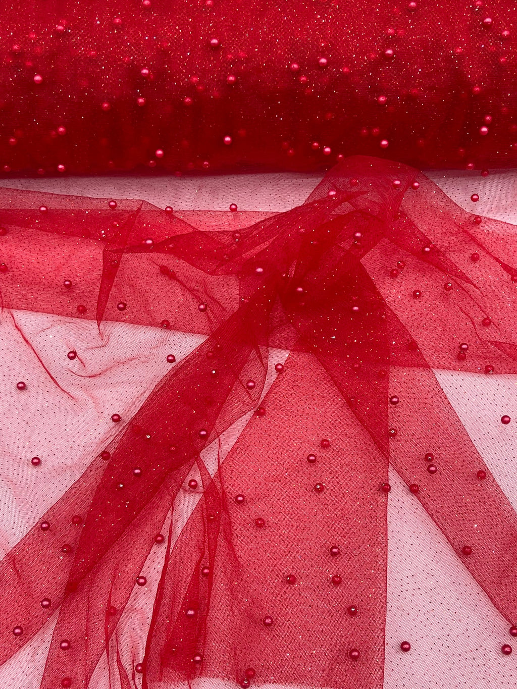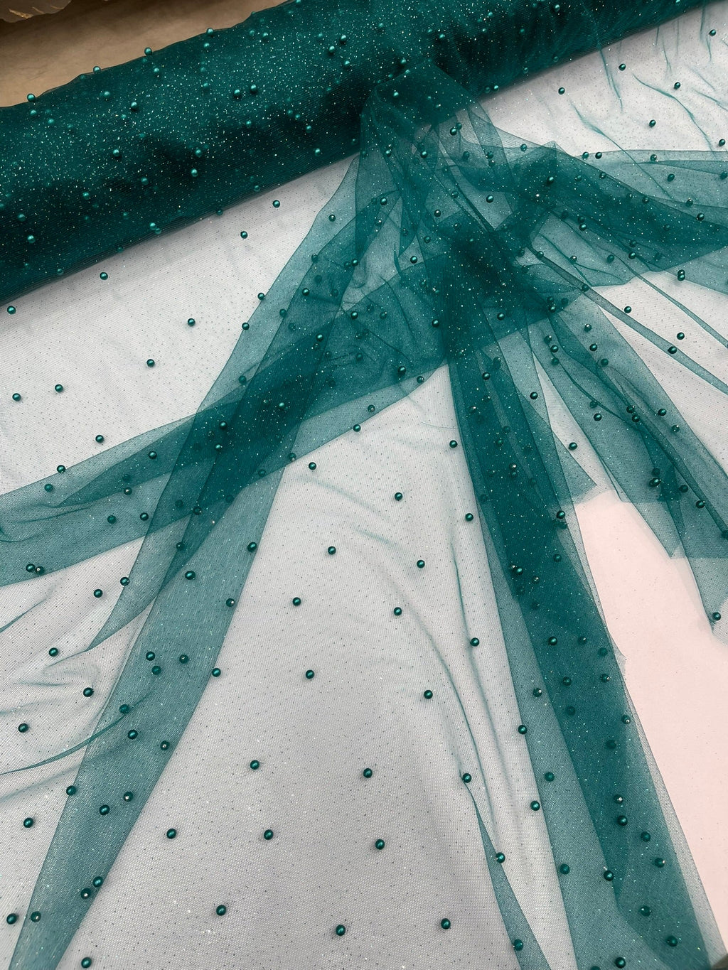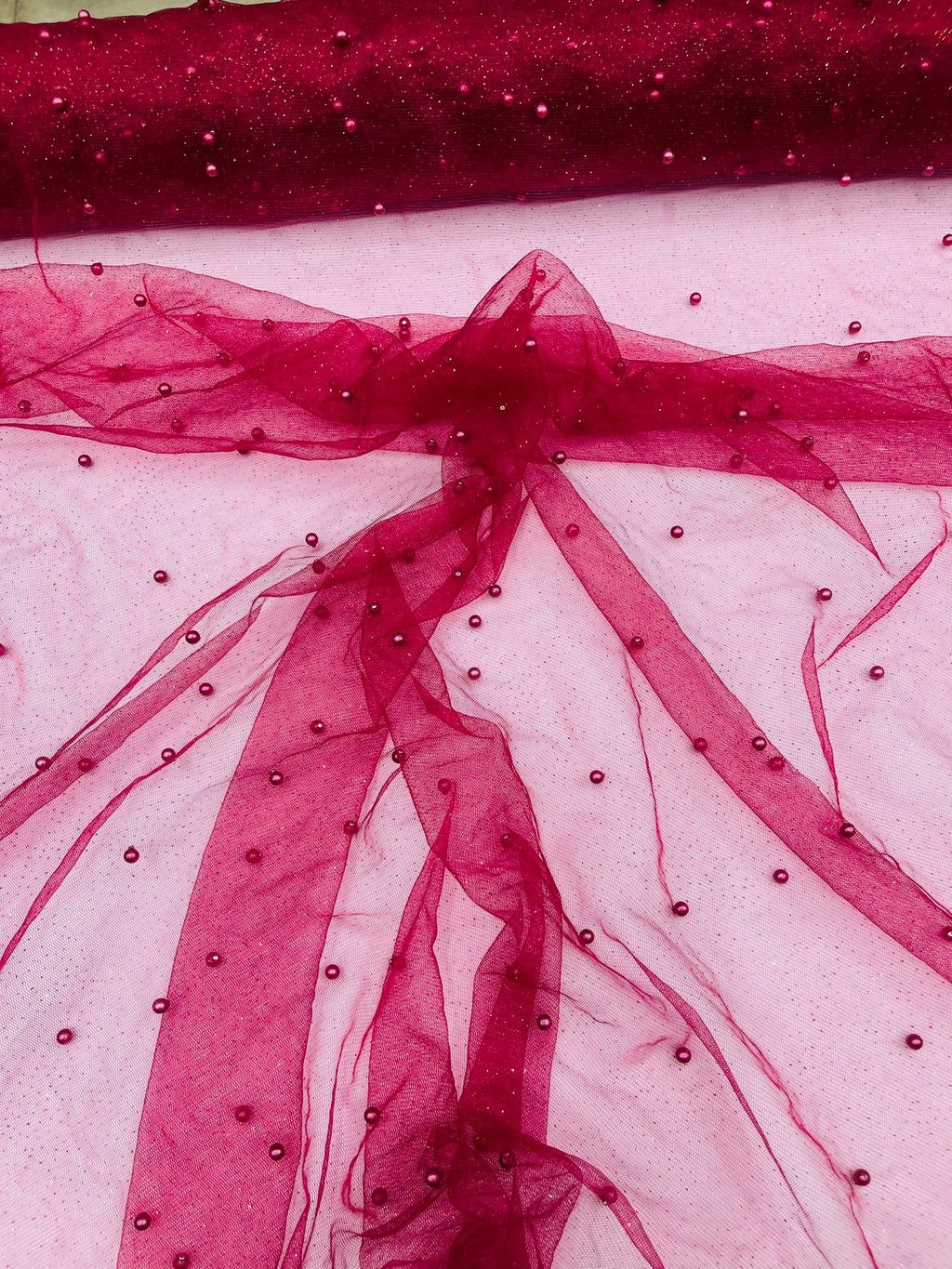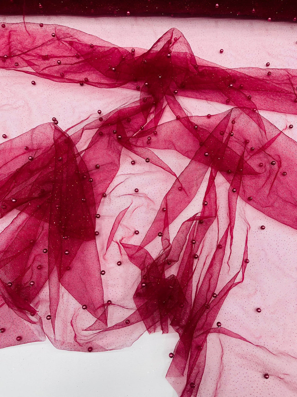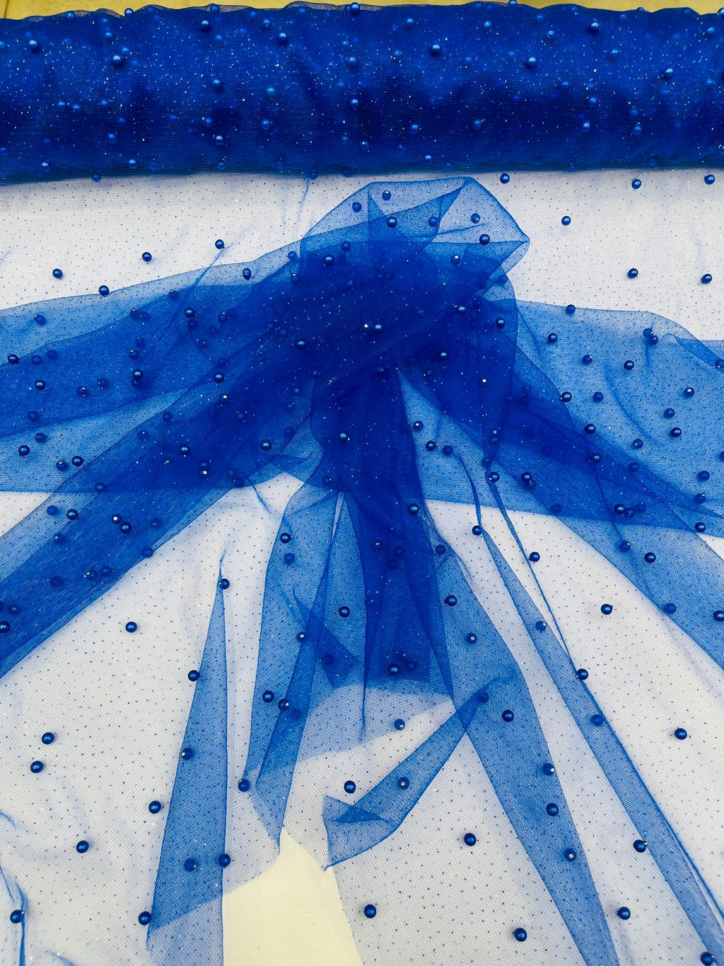 This Glitter Studded mesh fabric embroidered with pearls, It is a 2-way stretch mesh fabric. width of 60" wide this fabric is suitable for tailoring of final and wedding dresses, skirts, corsets and décor.