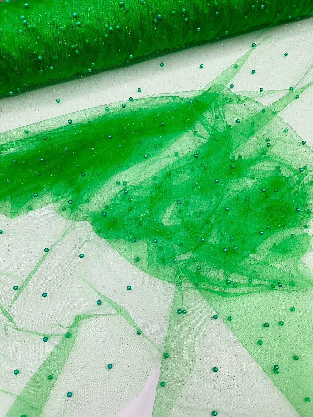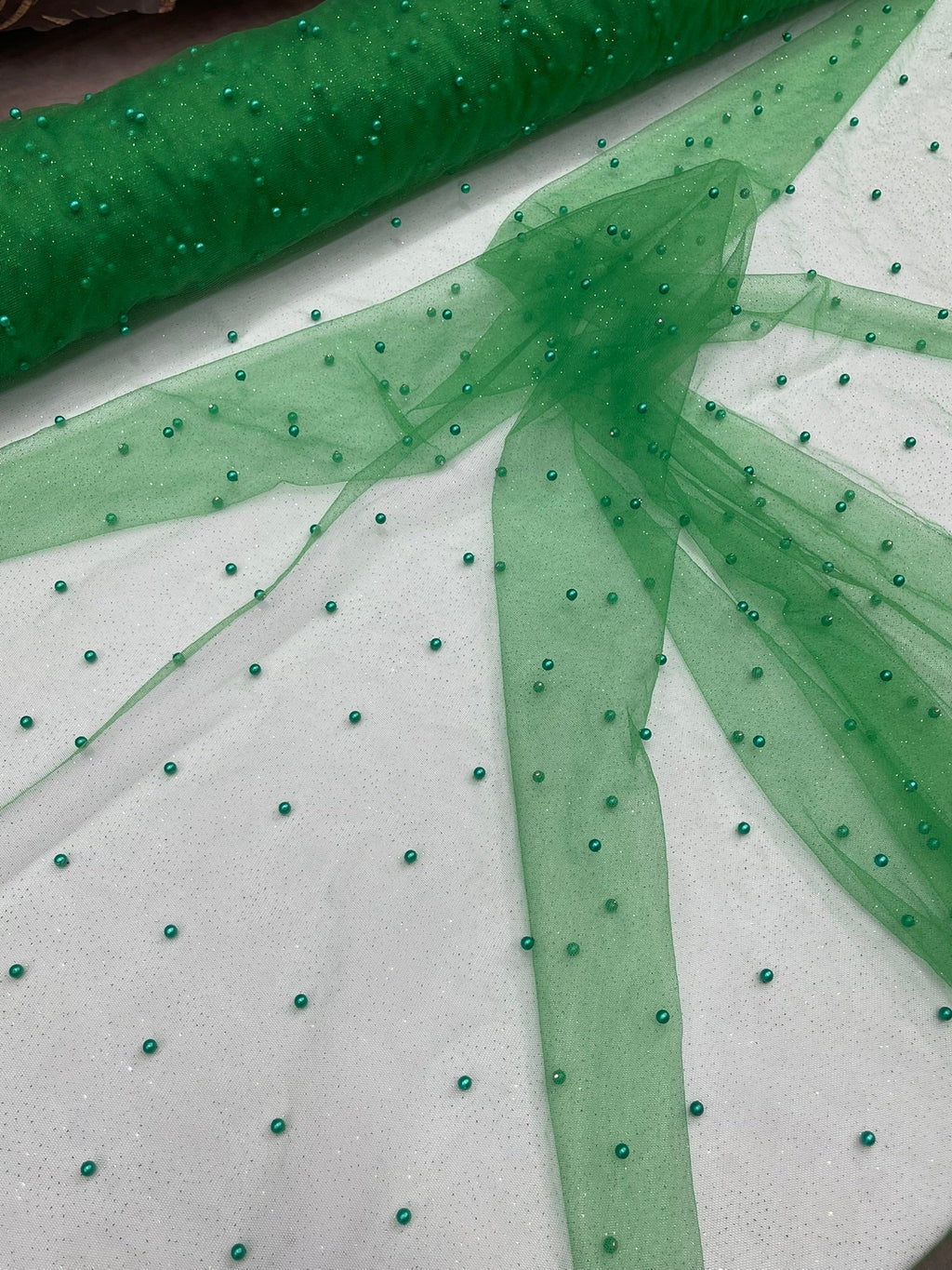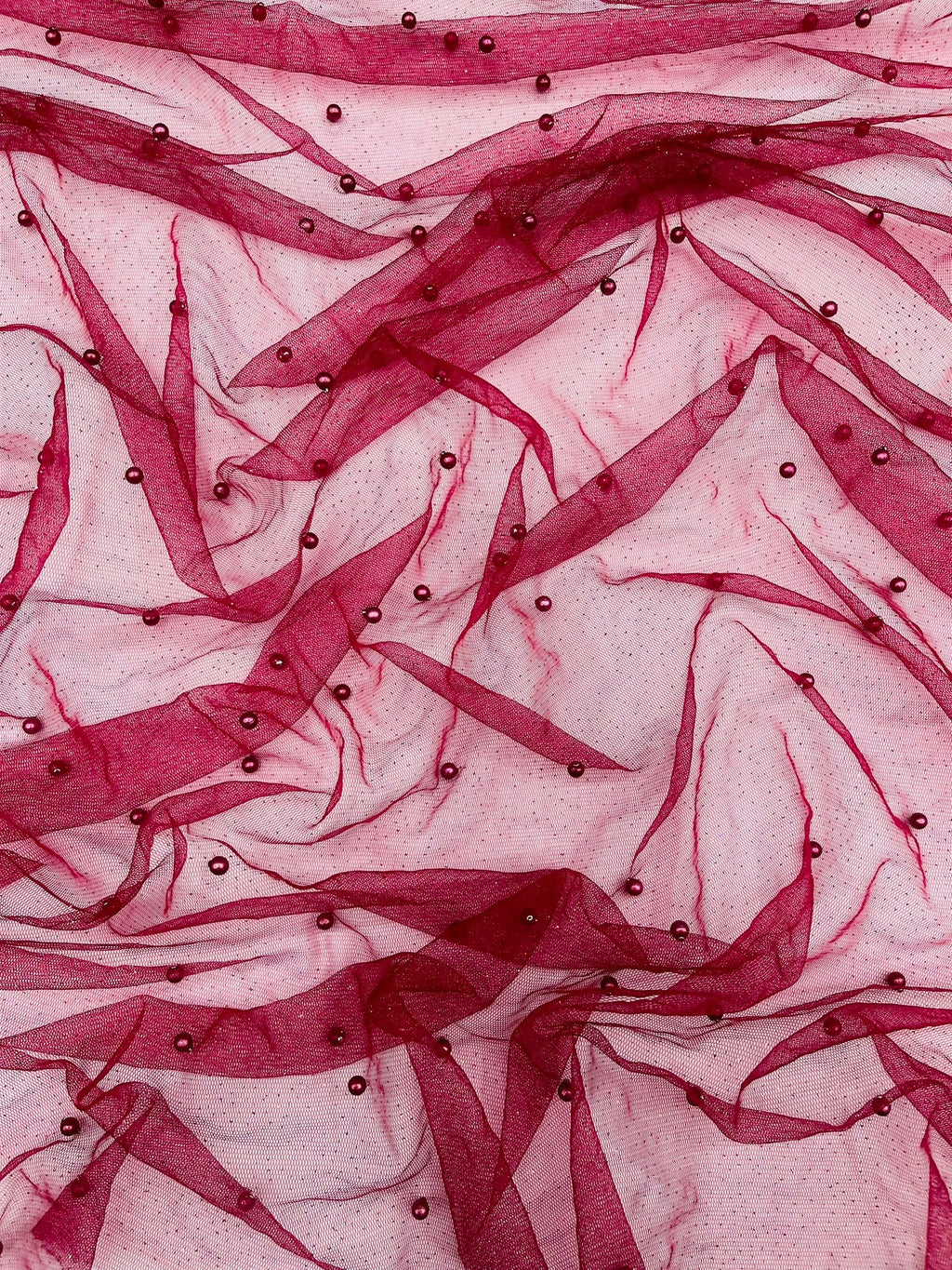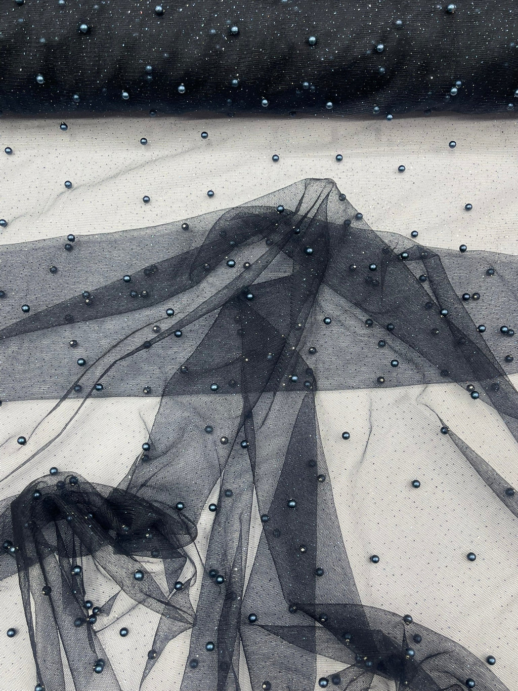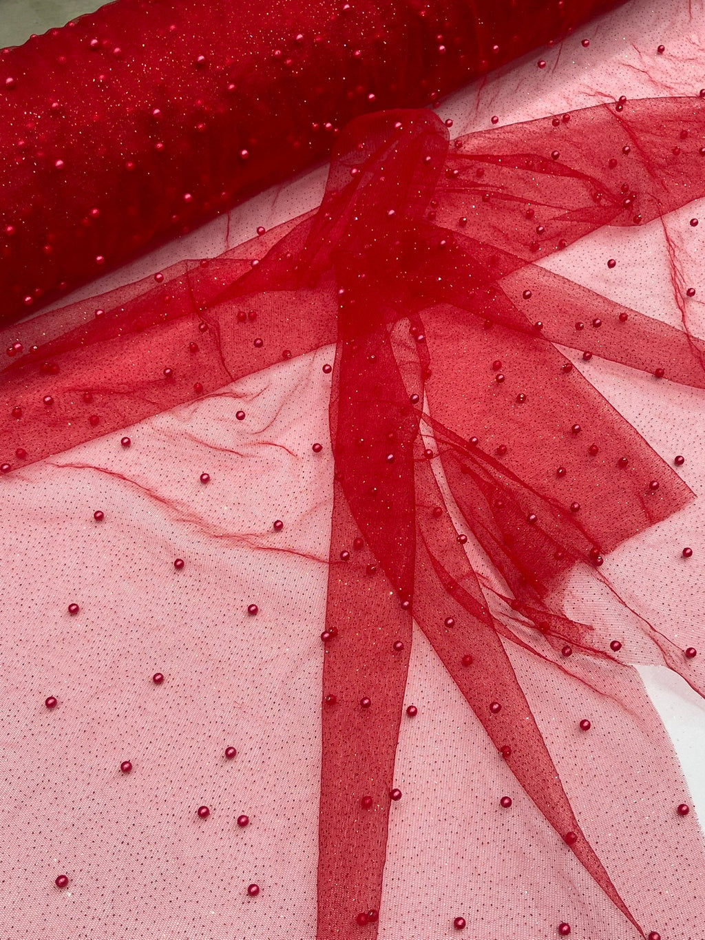 This Glitter Studded mesh fabric embroidered with pearls, It is a 2-way stretch mesh fabric. width of 60" wide this fabric is suitable for tailoring of final and wedding dresses, skirts, corsets and décor.