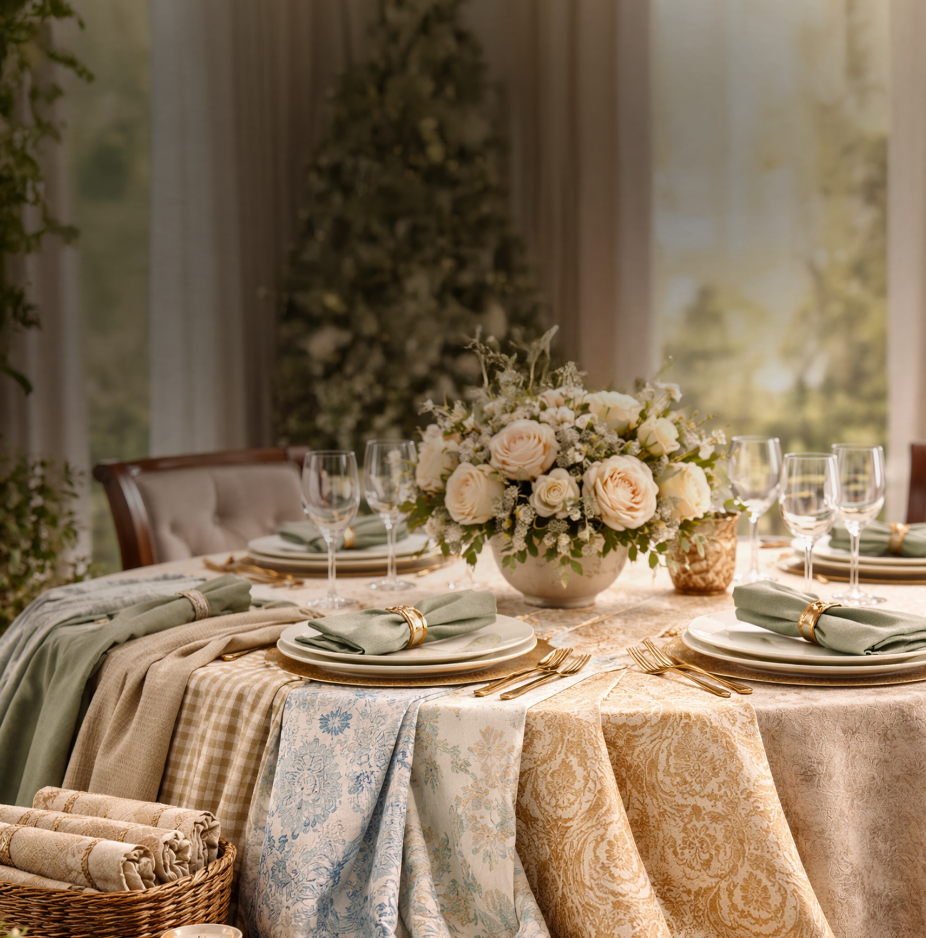 Premium table cloth textiles created for hospitality, events, and home décor—crafted for durability, easy care, and visual elegance.