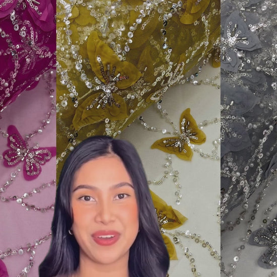 Beautiful 3D Butterfly design embroider with beading and 3d butterfly on a mesh lace. The lace has sequins/beads and 3d butterfly's embroider for a sparkling real look. This beaded lace design gives a beautiful shine. This lace is a great item for show people and dance dresses, great for Vegas shows.