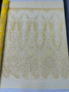 Wing Feather Damask Beaded Lace 54" Wide | New Creations Fabric & Foam Inc.