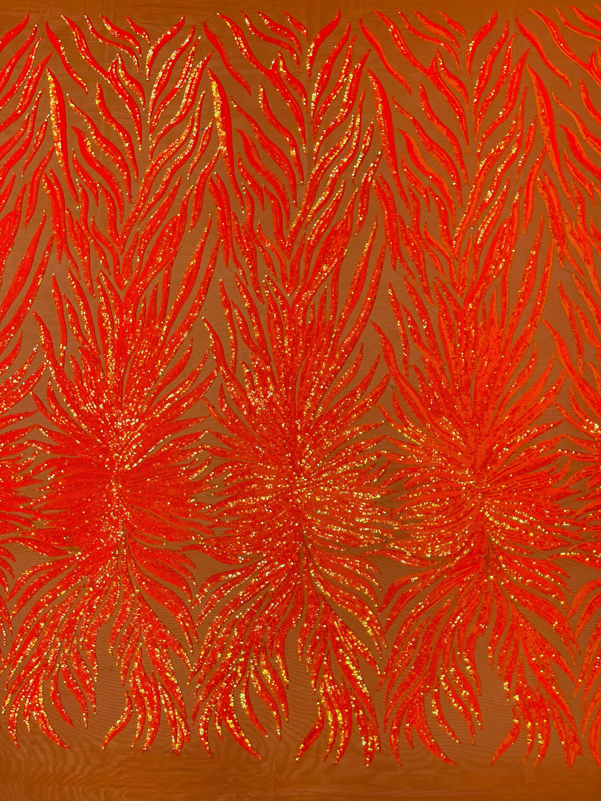 sequin flame design on a 4 way stretch mesh-sold by the yard.