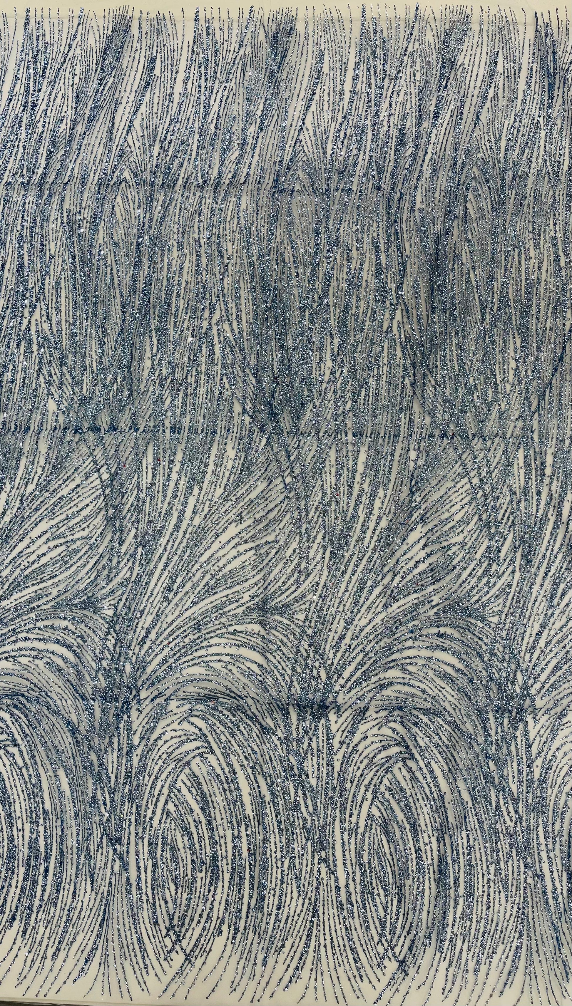 This shiny glitter Fashion design is made up of glue on a Mesh with glitter on the design. This lace is modern but yet classy and the glitter gives it's a beautiful look. The lace can be use for dresses, tablecloths, runners, decoration, skirts, jackets, nightgowns, prom dresses, apparel and much more.